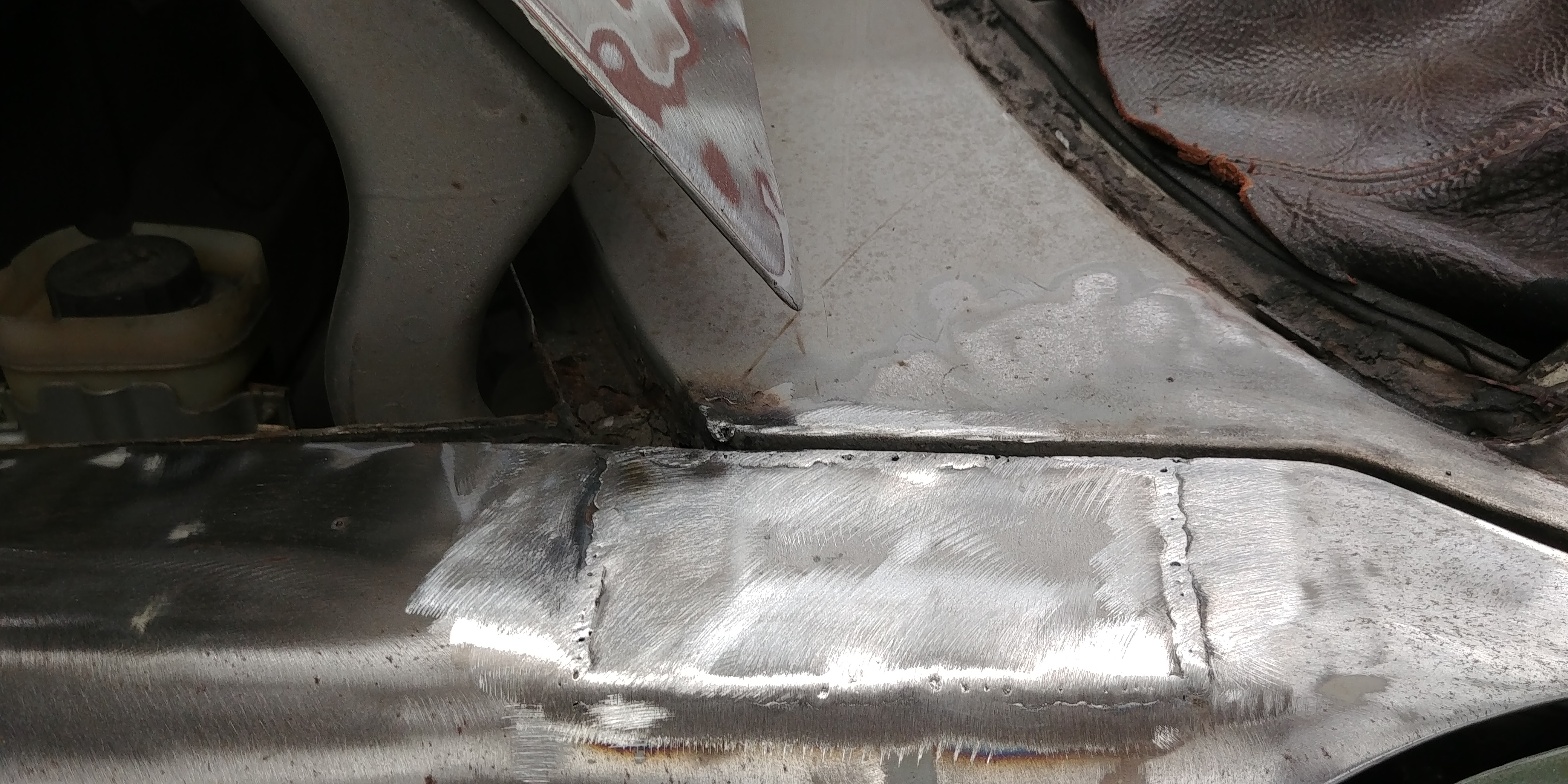 Nothing to take pictures of today but spent an hour this morning rough grinding some areas in the cabin knocking down welds from the inner long reinforcement, the tunnel flange rebuild , spot welds and then front trunk area, also welded pin holes in yesterday's patch and hammered that all flat and blended..