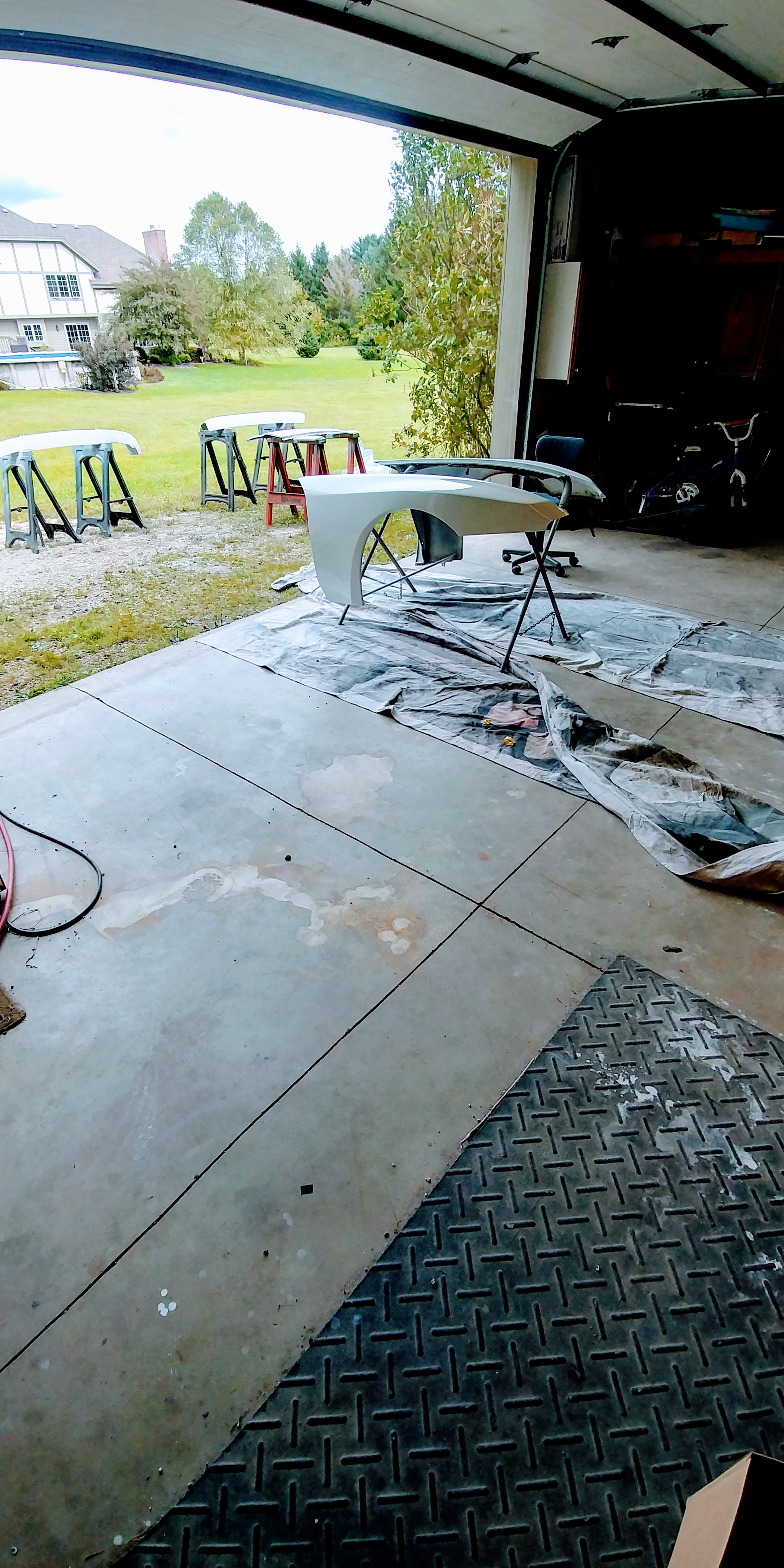 Been doing allot of sanding and paint removal as of late both on my car and my sons 944. I stripped the hood for my car and removed all the headlights and wiring and started removing the undercoating that someone sprayed in the front trunk. Most of the nasty paint is gone. I sanded the rest.. I have a small section of the front bulkhead needs to be repaired.. The plan is to fix this area and get ready for epoxy over the next few weeks. Mark Epstein has sent me some bumpers and I will doing GT treatment for both of us and sending out for chroming. I need to find out what size the plug was that Mark Henry did so that will be the next question I have.. |