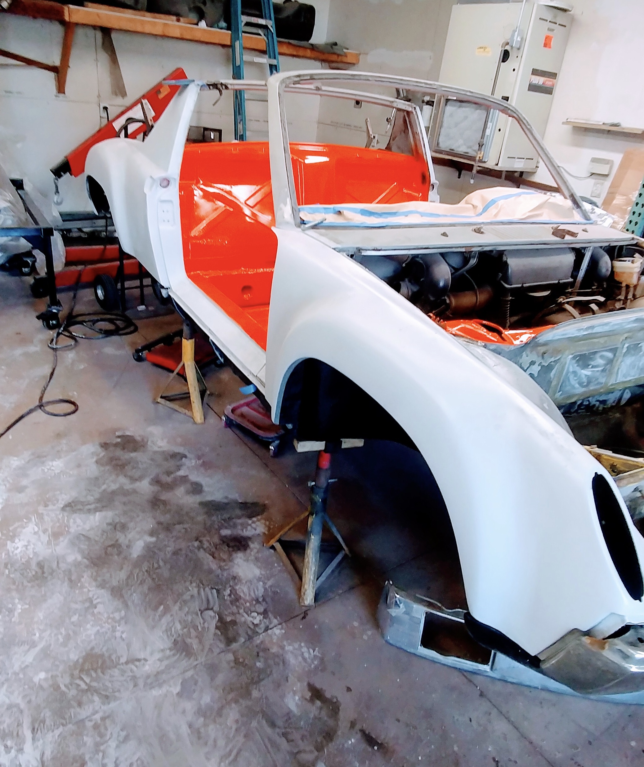 Just a little assembly . Again trying to make this a roller and not spens so much time on jackstands and not movable. A little PMB and 914rubber love here. Along with freshly painted and powdercoated parts. Special thanks to Mark epstein for the struts and hubs. Gonna install front a arms etc shortly.