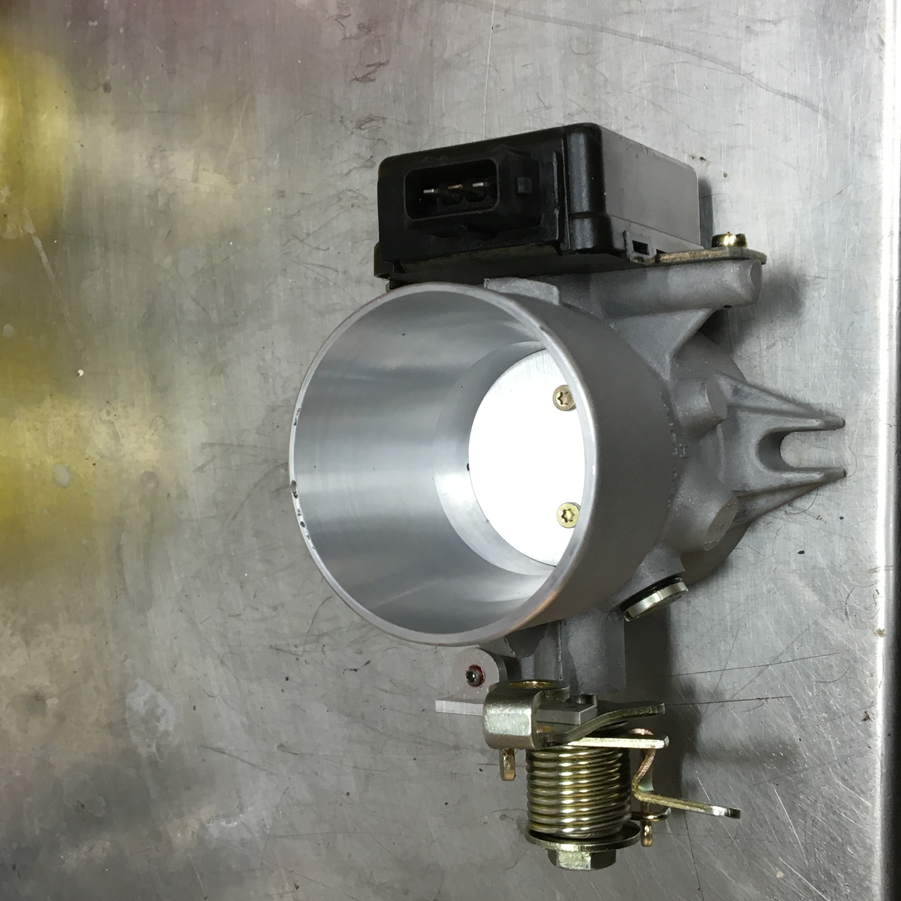 Just got my tb back from Phil. It drives so smoothly it is almost sinful. The problem I had (and apparently common) is that the throttle plate would stick in the closed position and would need a blip on the throttle to disengage the throttle plate and then you could feed in the power. Phil also added a mod -an adjustable stop on the tbspindle assy to stop the throttle plate from jamming on the wall of the tb Now, I have to change my driving style as you can accelerate silky smooth from rest. A very rewarding result. $295 shipped to Aus. Thanks Phil The other plus is that I can now have the secondary return spring which goes from the bell housing tinware to the tb spindle. The secondary spring is obligatory for track use but the car was impossible to drive with one before the rebuild. Phil can be contacted through Samba (easy to join) or his address is Philip Eslin 290 Sandia Rd NW Albuquerque NM 87107-5335 USA Thanks for posting his contact info. You Da Man |