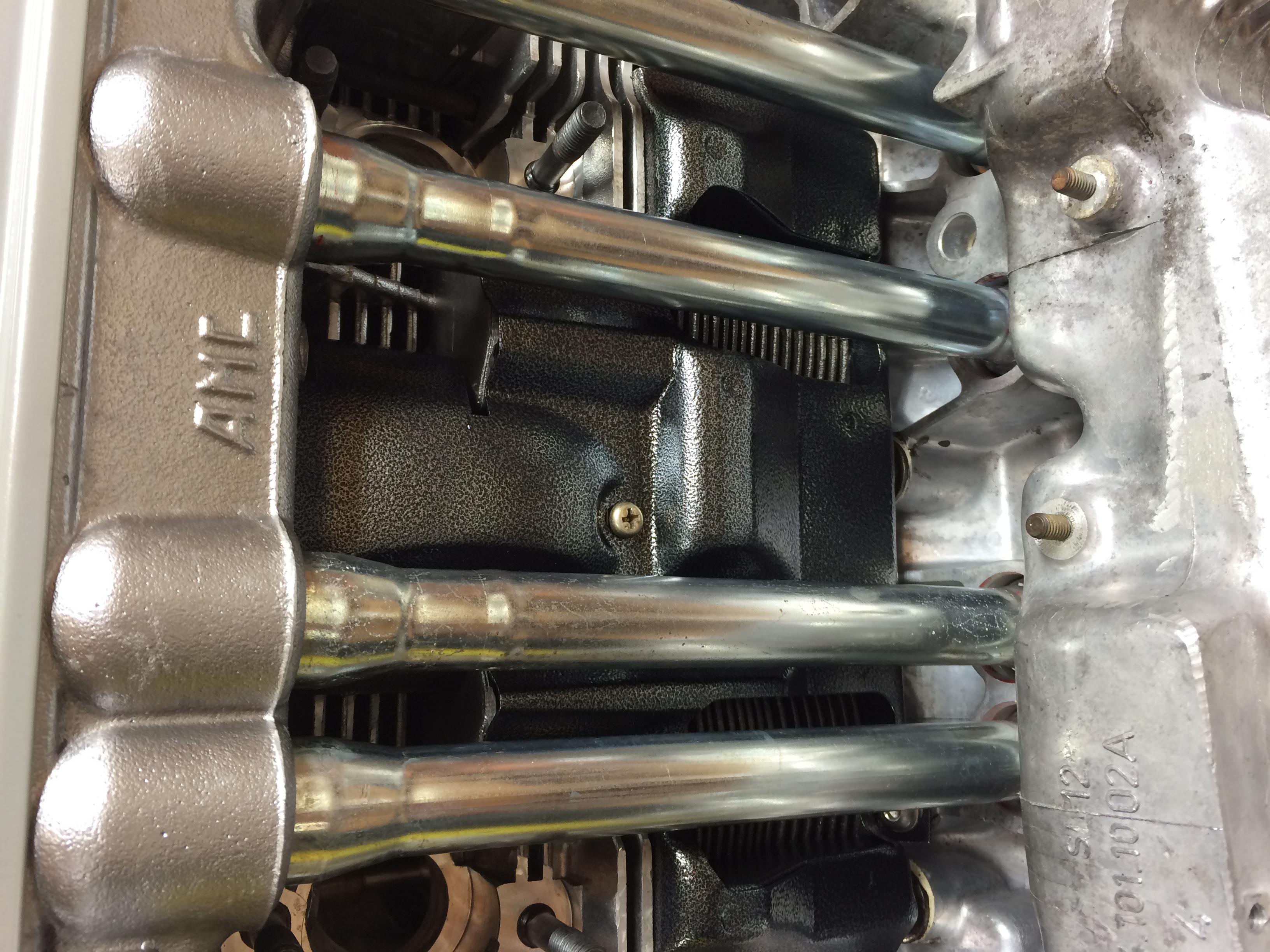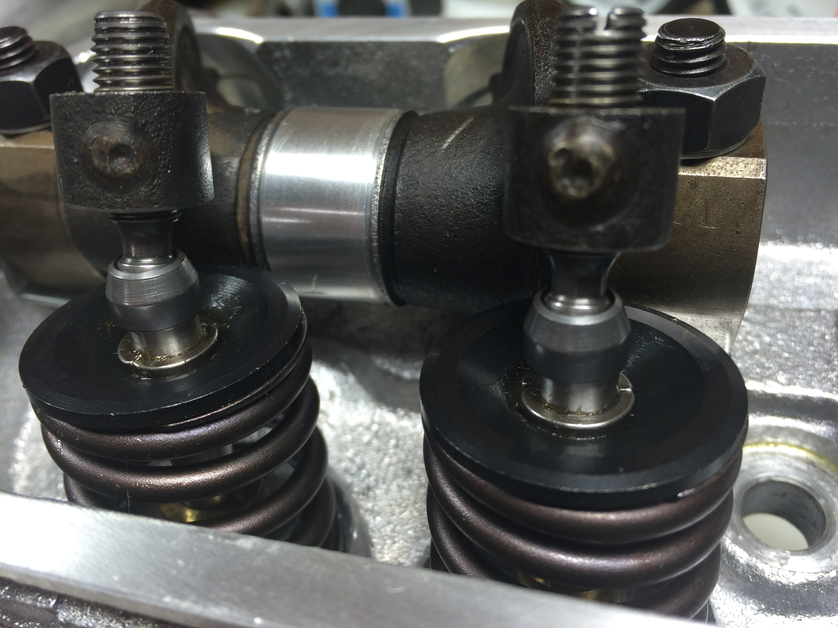 Cyl IN Lift EX Lift 1 0.449 0.427 2 0.451 0.426 3 0.452 0.416 4 0.450 0.423 Note 1: All with thickest rocker shaft spacer Note 2: All with 10.754" pushrod All of those lift numbers are within the +- 5% range suggested by Raby. Also all adjusters nicely aligned with the valve stem at half of measured lift. I still plan to measure valve - piston clearance before final assembly. It does seem like the swivel foot adjusters may contact the valve covers, I still need to measure that. |