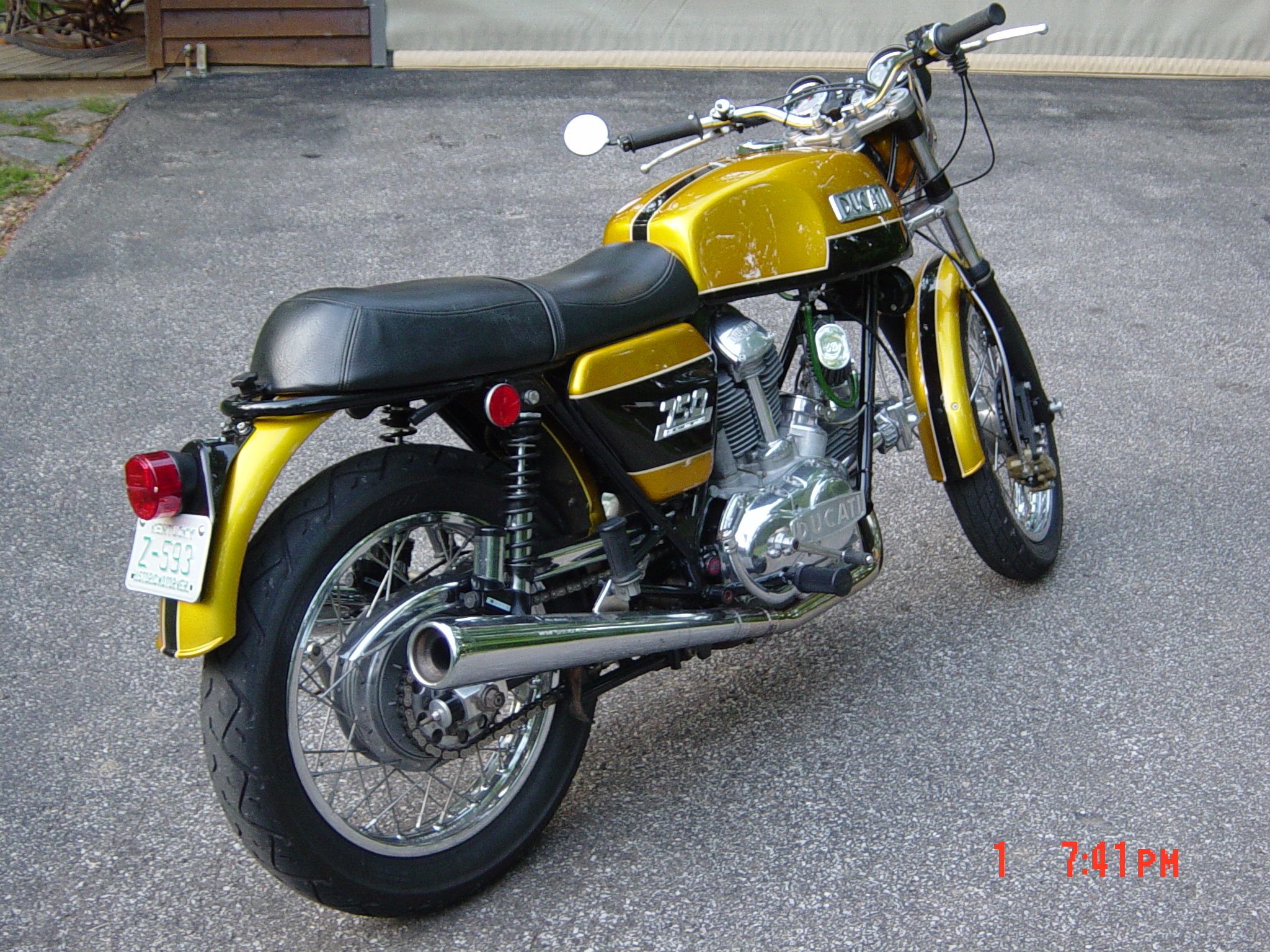 sorry for the OT request: can you post a pic of your Ducati frontend setup. i'm curious what you did to the caliper mount(s). I tried to zoom into the pics but it's either covered or blurry. Happy to post Duc pics. I made the Brembo mounts such that I could go back to the APs if ever needed, keeps value in the bike. The forks were not modified at all. I think they are kinda fugly, but they sure do work. Note that the pads don't sweep the entire rotor so there is some rust that develops on the inside "ring" of the rotor. Scotchbrite was invented to fix that. Pic... |