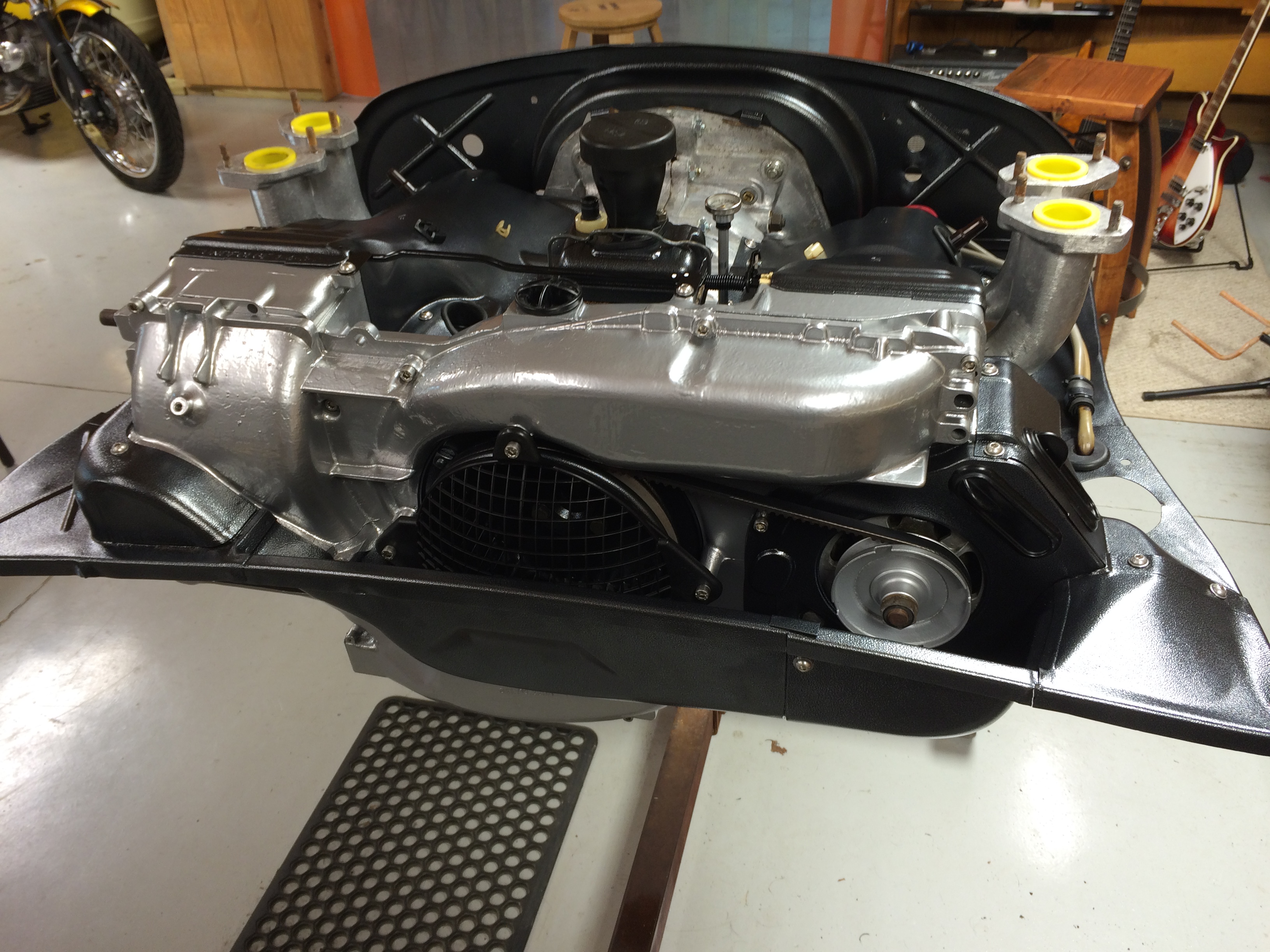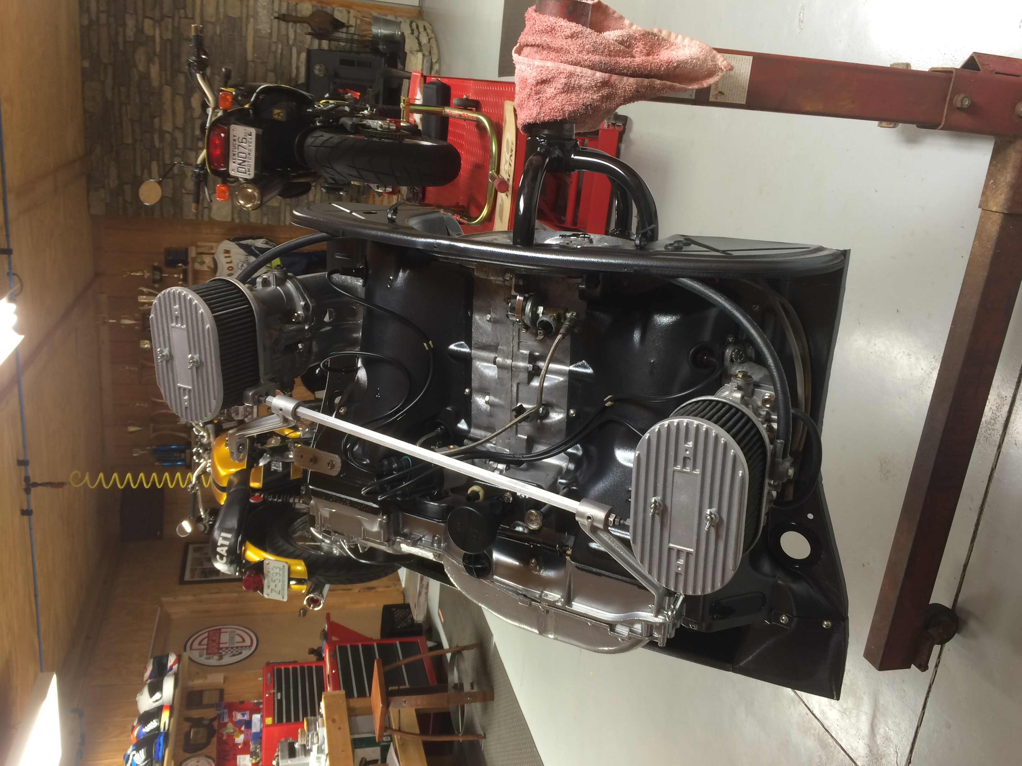 I have a "spare" 1976 VW Bus short block (no cyl. heads). Assume this will work for a starting point? Issues with oil dipstick? The bus was an automatic so I assume once I remove the "flex plate" that the flywheel from by 914 engine (in car) will bolt up to the crank without issues? Any issues with engine carrier? The bus used a "moustache bar" for mounting to the frame and I am hoping that the cases from the bus/914 are the same for engine mounting? Will re-use existing Crank/rods New crank/rod bearings Will re-use existing cylinders (overbored) KB 96 mm flat topped pistons with Hastings rings Webcam cam (9130 kit from Type IV Store) Type IV Store pushrods, pushrod ends, parkerized lifters, rocker shafts Type IV Store cam bearings Re-use rockers from bus engine? Not sure about this... HAM (Len Hoffman) RS+ spec cylinder heads New Oil pump from Type IV Store New clutch & pressure plate. Re-use flywheel from 914 engine (in the car) Dellorto Dual 40mm carbs, CB Perf manifolds & linkage SSI heat exchangers & Bursch exhaust New fuel pump - will run return lines (have CFR SS Lines in car now and will re-use) Not sure what dizzy to run? I believe I need to check/verify deck height and valve clearance (I know how, just not positive this is required for a 2056 build). I have read a few threads about "setting" compression ration, but do not understand it yet? Anyone have a compression ratio for dummies guide? Anything else I'm missing? Progress so far... |
