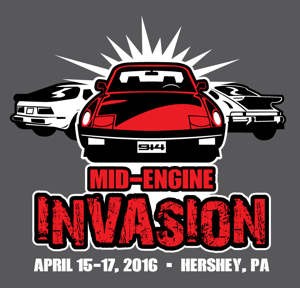 UPDATE - I will order the event shirts this coming Monday, April 4th. And turn in the headcount for the Saturday dinner on Monday, April 11th. So, if you haven't registered yet please do as soon as possible. Mid-Engine Invasion is on. Hershey, Pennsylvania April 15 - 17, 2016 REGISTRATION IS NOW AVAILABLE - HERE Once you are done registering, please go to - http://paypal.me/savethe914 - to send Paypal, for the dinner and/or shirt(s). HOTELS: Knights Inn, Palmyra, PA There is a block of 20 rooms reserved (under the name - Invasion) at the group rates for Friday and Saturday nights. Single King - $69.00, and Double Queen - $79.00. They will only hold the rooms until April 1. Since the Knights Inn is fairly small, we also have a block of Rooms at the Howard Johnsons. Details on those reservations to follow. Event Shirts: The t-shirt design is below. ITINERARY Friday: Fun Rally - saigon71 is organizing the fun rally again this year (Thanks Bob) Begins at 1 pm AACA Museum 161 Museum Drive Hershey, PA 17033 The museum is featuring an exhibit of Micro and Mini cars that you might want to check out Friday morning before the rally. The fun rally will include a stop at Air-Cooled Racing's shop at around 3:00 pm. We will publish the fun rally route prior to the event, including various stops (with projected times) so that late-comers can join the rally throughout the afternoon. While everyone loves to see 914s, all cars are welcome. Even if you aren't bringing a 914 (or Porsche), you are more than welcome to participate. Fun Rally will end at about 6 pm at Underdogs Sports Bar and Grill 3100 Paxton Street Harrisburg, PA 17111 The drive will include a tour of Air-Cooled Racing's shops, and lunch - hot digs, beans, etc. In keeping with tradition, hang out at the Knights Inn after Underdogs. Saturday: Meet at Dunkin' Donuts - 7:00 am 605 Park Avenue Hershey, PA 17033 We are planning to meet Saturday morning for a caravan to the swap meet. By caravaning, we can park together at the people's choice "concours." More details of the Saturday morning meet-up location to come. PCA Swap Meet & People's Choice Concours - Registration for the concours is day-of-event only. Cost to enter the concours is $10 and includes - a Stoner car care product, the opportunity to win a trophy, and parking close to the swap meet. We would like everyone that is bringing a 914 to register for the concours, so we can have as many 914s as possible. We will also do our own voting and awards (given out at the Saturday night dinner) for cars in the concours. We will also be doing our own 914 judging at the Saturday concours, so please make sure and vote. If you are bringing a 914 Saturday make sure to get a windshield card when you arrive. Awards to be given out at the Saturday dinner. Swap Meet Spaces (to set up a booth at the swap meet) - mepstein is handling the spaces again this year (Thanks Mark). Deadline to let Mark know you want a space, and send money to him for it is - March 1, 2016. • Primary Spaces (includes 2 spaces & vendor pass) $80.00 • Additional Spaces $40.00 each space (one additional vendor pass for every two additional spaces purchased) • Choose side/side or end/end • Confirmation will be by email or can been seen in your profile. • Vendor passes will be mailed 2 weeks prior to event • Gates open for Vendors 6:30am • Each space is 9X19 approx (parking space size) • Allow enough space for vehicle and display • Bring confirmation with you. No Refunds • Day of registration $100/2 space min plus $25 township fee. Additional spaces day-of $50/space • Pre-registered vendors may load in Friday 1pm to 5pm (lot locked down at 5pm) • No selling food, no Stakes in lot, No electric available • Porsche Corral $40/car -- No Pre-reg required to sell your car Saturday Afternoon after the Swap Meet We are considering a drive for those that want to participate. Saturday night dinner, awards, fun, etc.: 5:30 - 8:30 pm Adults $24.99, Kids (4-12 years old) $12.99 Hometown Family Restaurant 1 North Londonderry Square Route 422 Palmyra, PA 17078 All-inclusive dinner Awards from the People's Choice Conqours Build-Off Challenge leader update Games Prizes Etc. We have to turn in the dinner headcount by April 1st. Please post here if you are coming to the dinner. We will be doing our own voting at the people's choice concours Saturday, and will have awards from the Friday drive and concours. Sunday: CPA-PCA Autocross Details to follow once PCA makes them available. WHO'S COMING? (It would be helpful in planning to know who's coming to the Friday Rally, the Saturday dinner, or both) stevegm - 2 for Friday Rally & Saturday Dinner saigon71 mepstein r_towle Big Len struckn somd914 rgolia - Friday, Saturday car show, Saturday Dinner 914forme Garold Shaffer - Friday 914ltd - Friday struckn BeatNavy cuddyk oakpark - 3 Zippy69 jfort wndsnd - 2 Friday Rally & Saturday dinner Dr Evil Porschef - 2 Friday Rally & Saturday dinner injunmort North Coast Jim - 2 for Saturday dinner achman_73_2.0 - 1 for Friday Rally & Saturday dinner 914itis dlee6204 - 2 for Friday Rally & Saturday dinner BeatNavy - Friday Rally & Saturday dinner MikeSpraggi - 914 right pedal - Friday Rally & Saturday car show hot_shoe914 jkb944t - 2 for Friday Rally ratsterr - 2 for Friday Rally and Saturday dinner jfort - 2 for Friday Rally, Saturday, and Saturday dinner Olympic 1.7 - Saturday Dinner Eric_Shea +1 - See you at Dogs Friday night. Attached image(s)