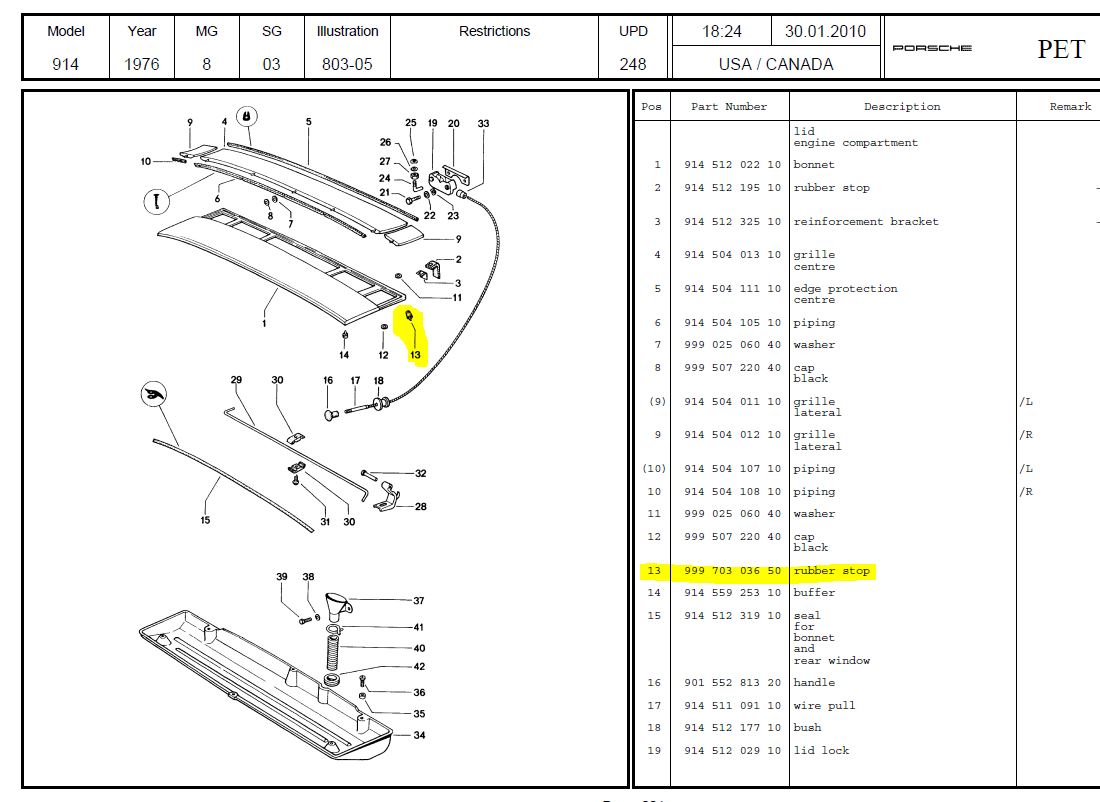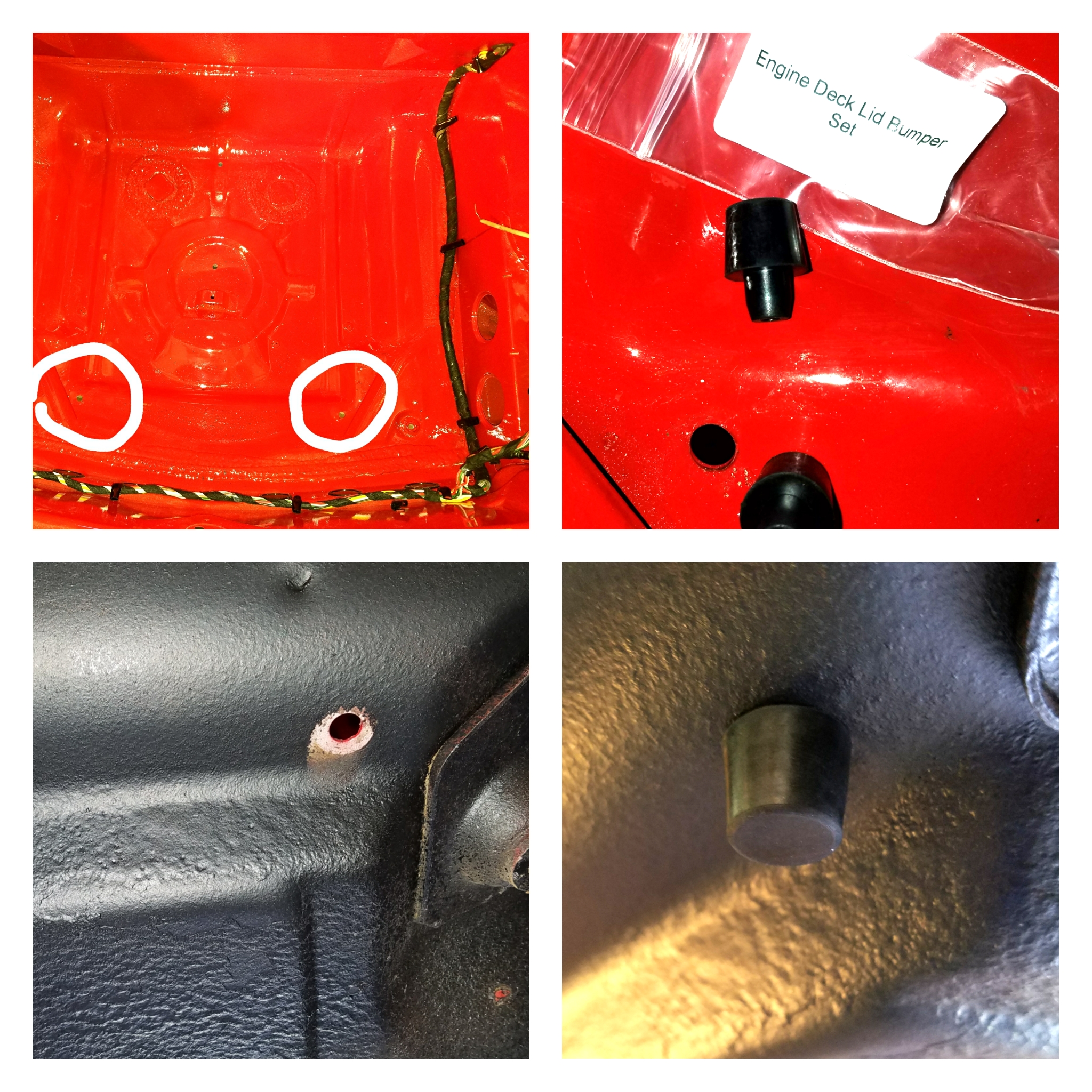 Learned that the "Engine Deck Lid Bumper" is actualy used in 2 places. The other is in the front trunk to keep water out in these 2 holes