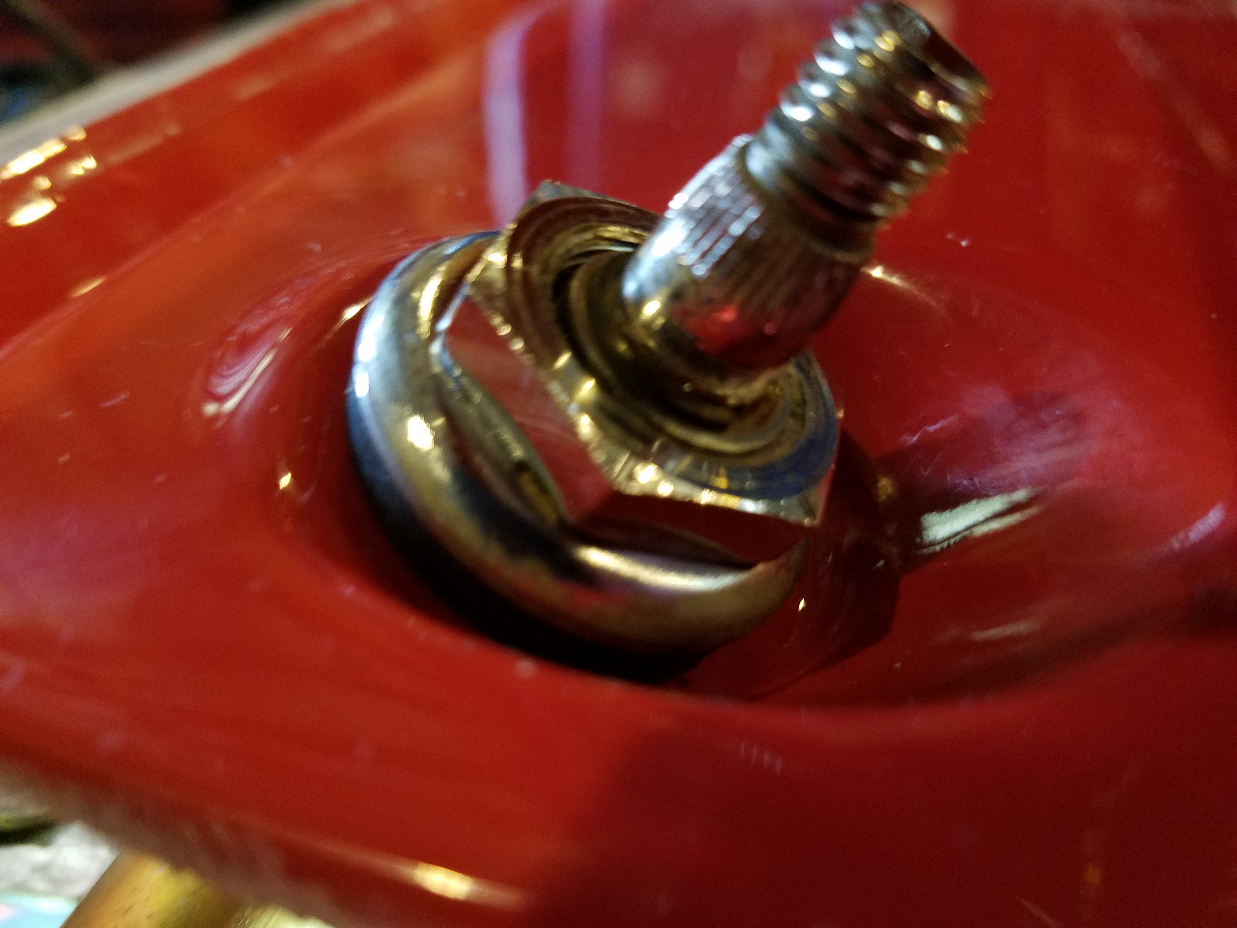 Add "male" wiper grommets and push the down as far as you can go. Ad metal cap washer and then the nut to tighten it all down.