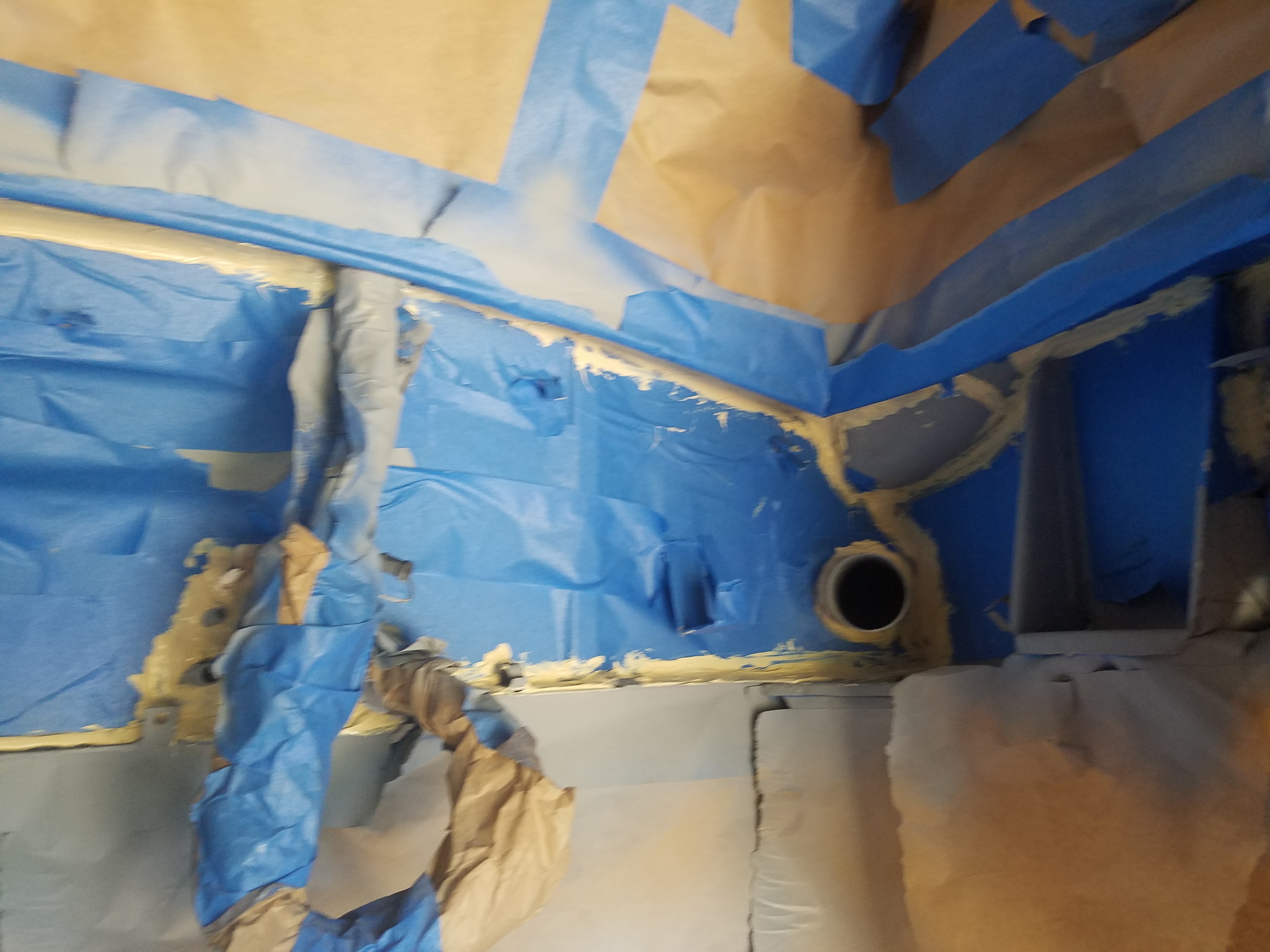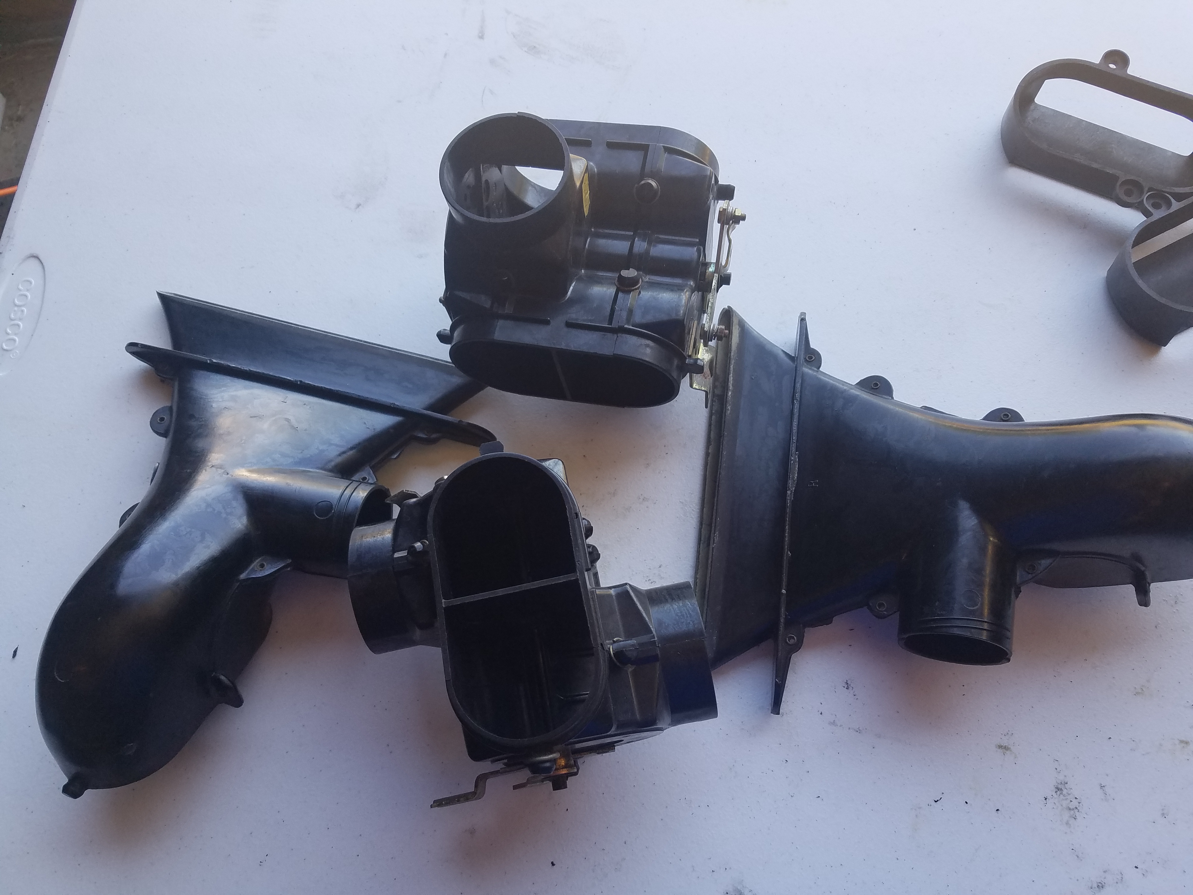 Cary figured out the best way to install the fresh air mixing box in the car.