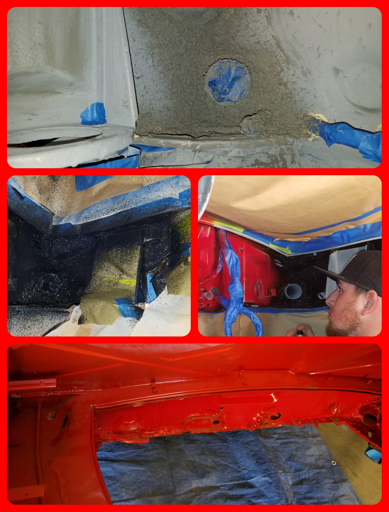 Haven't uploaded any progress for a while so here's a few more photos. We got the spray in seam sealer, wurth undercoat and paint in the engine bay.