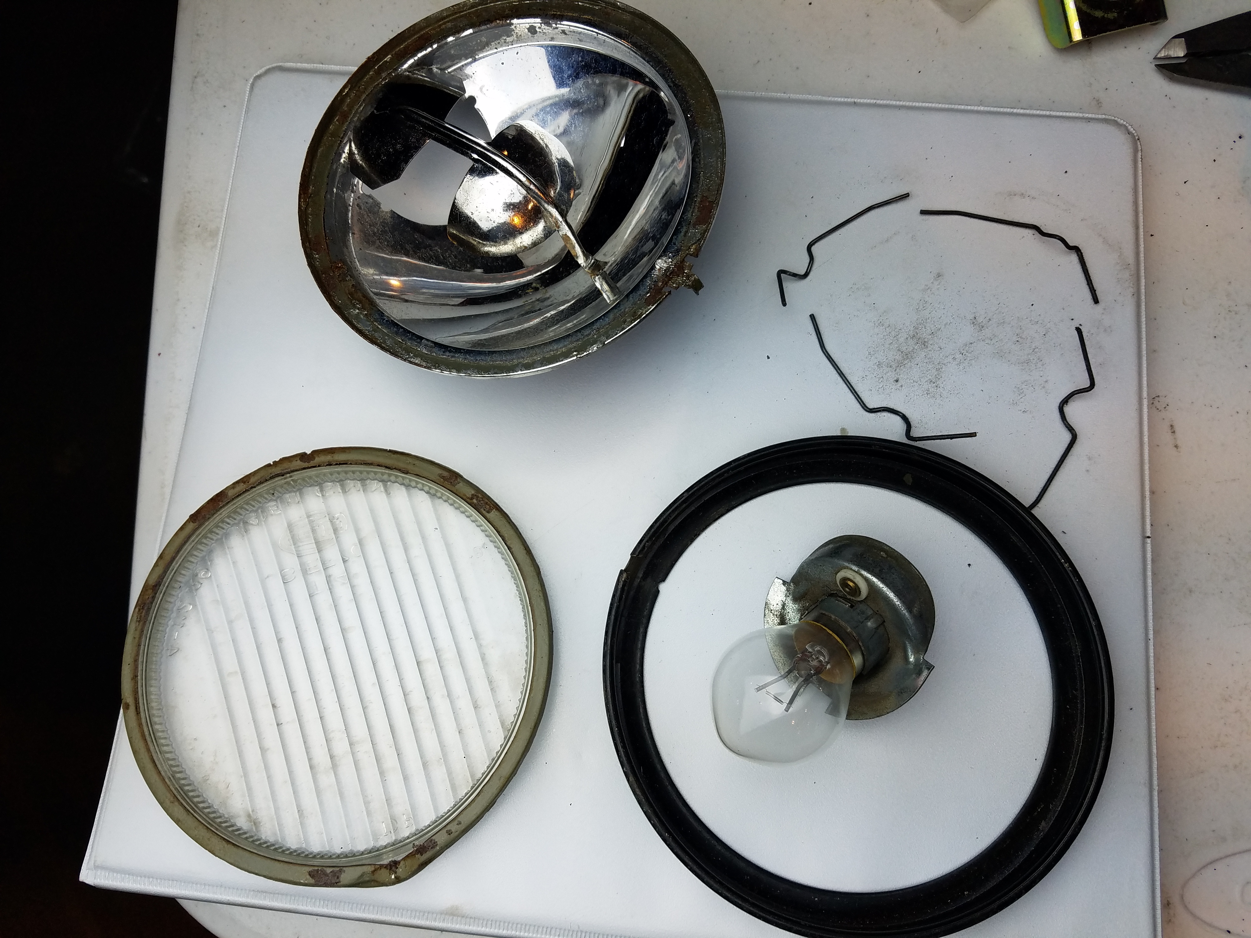 Got the parts out to put the fog lights back on the car and realized I hadn't taken care of the front of them around the lenses
