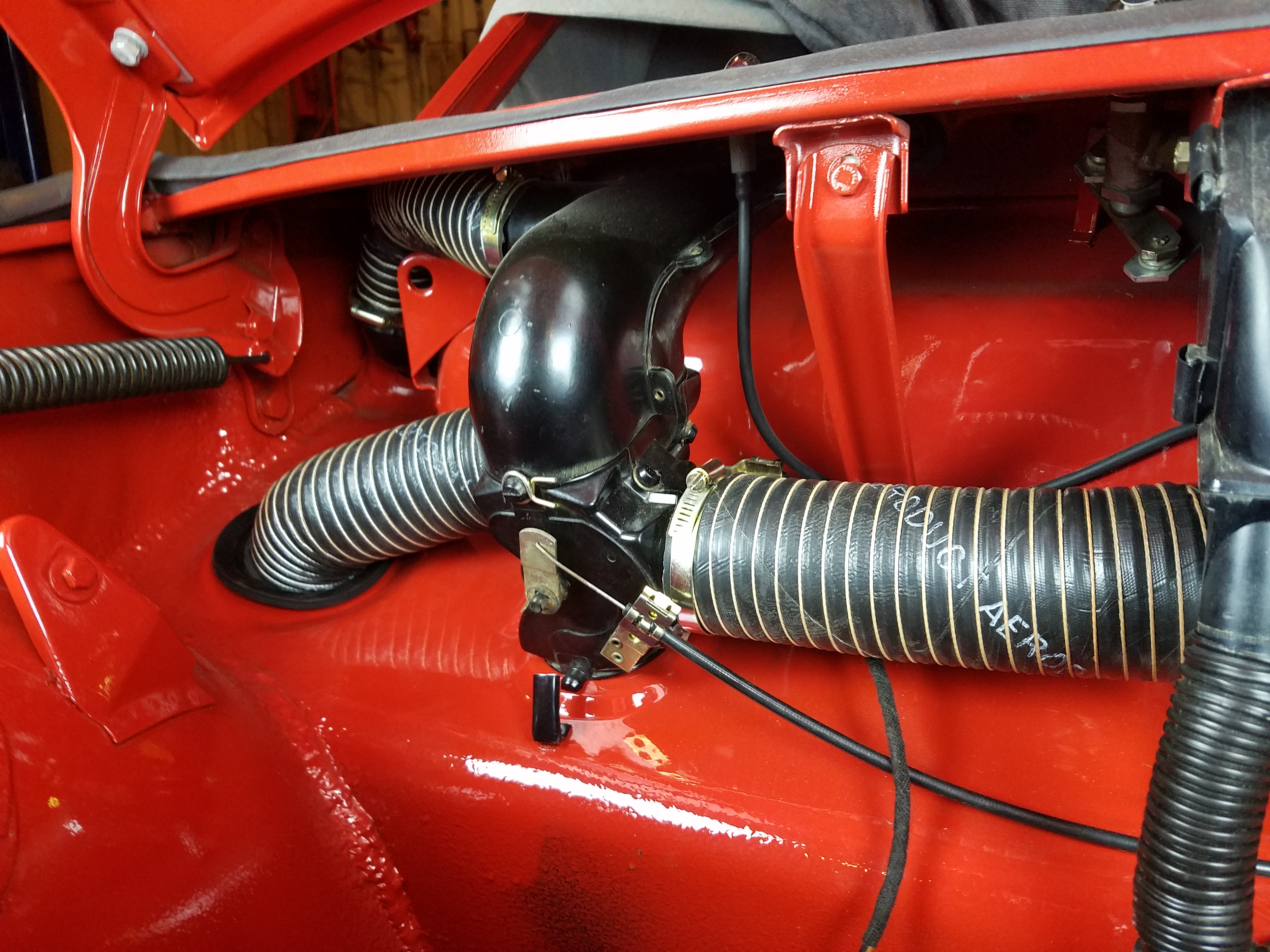On the drivers side I mocked up and alternative hose that we sell too, to try and figure out what one I like better. What do you think? I ike the Aeroduct. It's a better product but it isn't original in appearance like the first. (IMG:style_emoticons/default/beerchug.gif) They are both nice, but I will be going with the Areoduct hose after I get the wiring harness back in. |