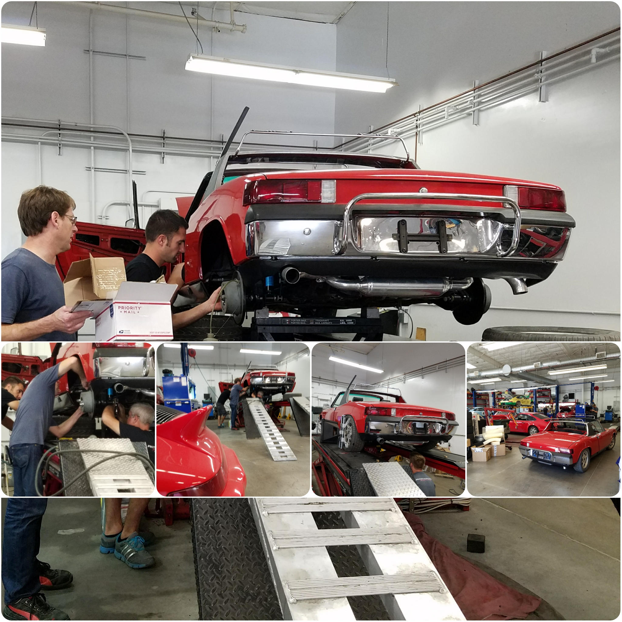 We left at 7pm and he still needed carpet and seats. No posts, maybe he got it done. I went back yesterday afternoon to re engineer the 4 barrel throttle. That's covered in Matt's other thread. http://www.914world.com/bbs2/index.php?s=&...t&p=2526840 Car has a 1pm appointment at Rothsport for a ride height, alignment/counterbalance. |