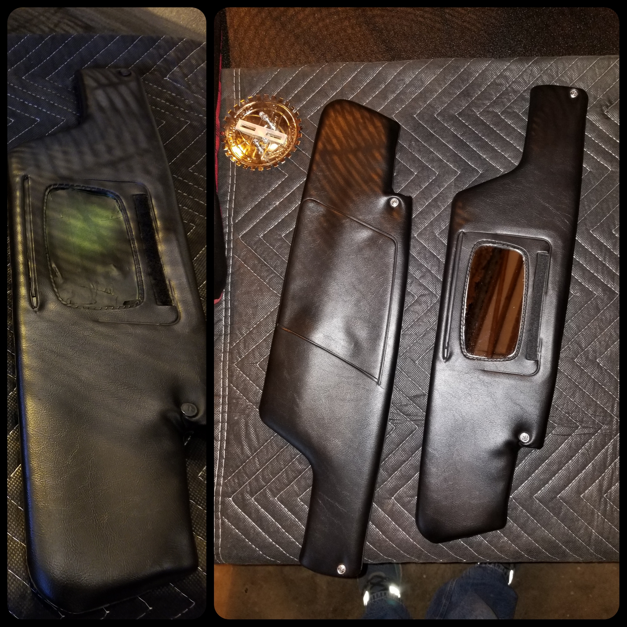 The original visors were in really good shape except for the missing flap to cover the mirror. Use a little vinyl dye to freshen them up.