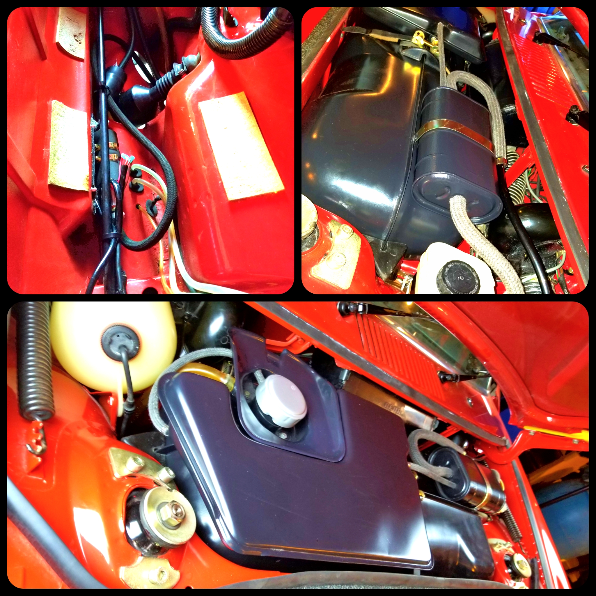 New high pressure fuel pump installed in the high pressure SS fuel lines. Tank back in with all new German lines for the vent lines and charcoal filter.