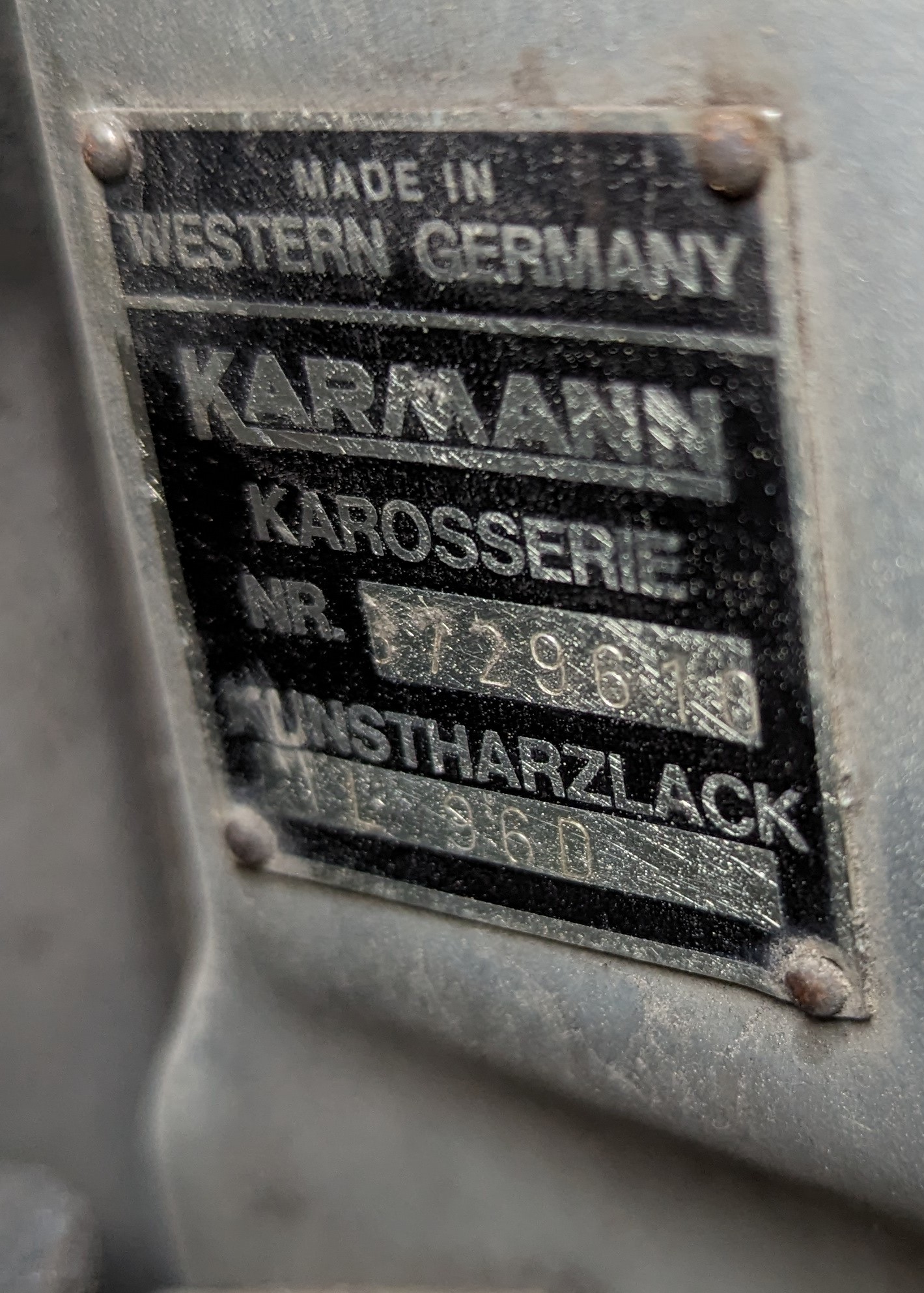 Does any of this apply to the -6 models? My Karmann tag has nothing stamped in the chassis box, and '15' (Irish Green) in the lower box.