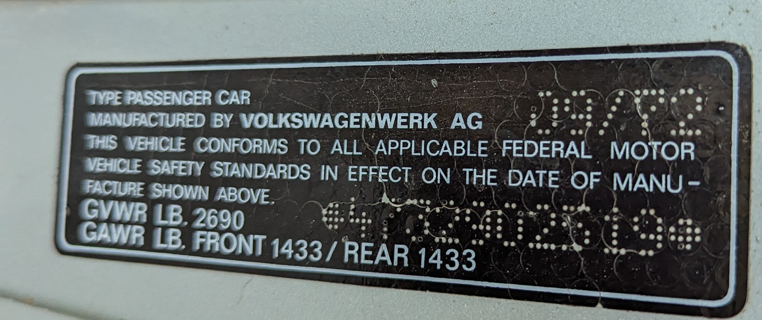 So mine says 9/72 but I can't figure that out by the chassis number... @emerygt350 Looks to be 3729610 so according to the guide from the first post that would be: 37 week 2 day 9 610 - 500 = 110 car that day Google-ing the calendar for 1972 week 37 was from September 10th to September 16 Since Karmann started counting on Mondays, the 2nd day that week would be: Tuesday, September 12th 1972 (IMG:style_emoticons/default/bye1.gif) Thanks Sir Andy!!! I missed its 51st birthday but I am sure it will forgive me. |
