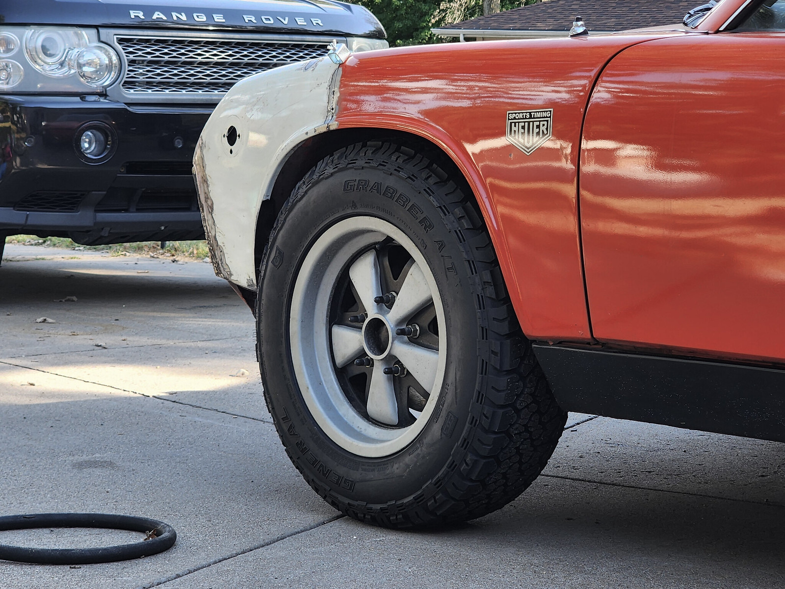 @Optimusglen (IMG:style_emoticons/default/agree.gif) Grabber A/T tires! so what will their purpose be, looks like you are heading int the off-road/rally direction? Phil I won't be hitting any jumps, but I wanted ground clearance and something that could handle a little bit of gravel. This is a driver, and the rallies I attend usually have gravel route options. Still tame enough for 90% road use though. The taller tires are going to give me some legs on the highway too. For my last x-country trip revs were a little high if I wanted to keep with traffic. For shorter drives it's fine but for 8 hours of highway it got old pretty quick. Welcome to the Safari club! I’m not sure how, but your rear camber looks ok to me. I had to add spacers (3/4”) on the outside of trailing arm mounts, and I lowered the inner mount point 1” to regain camber. Lookin’ good! Yeah, I'm not sure exactly what the deal is here. I do know the rear passenger side had a lot of negative camber even in street guise. The metal all looks solid, so I had chalked it up to the factory not welding the panels in perfectly. For the lifted setup, the drivers side is borderline... I feel like in droop it might be heading into positive camber territory. I still want to measure where it's all at now, and maybe at full droop. If It's not too bad, I'm going to leave the inner ears as-is and chalk it up to dumb luck. BUT also... the tall tires account for a lot of the "lift" here. |