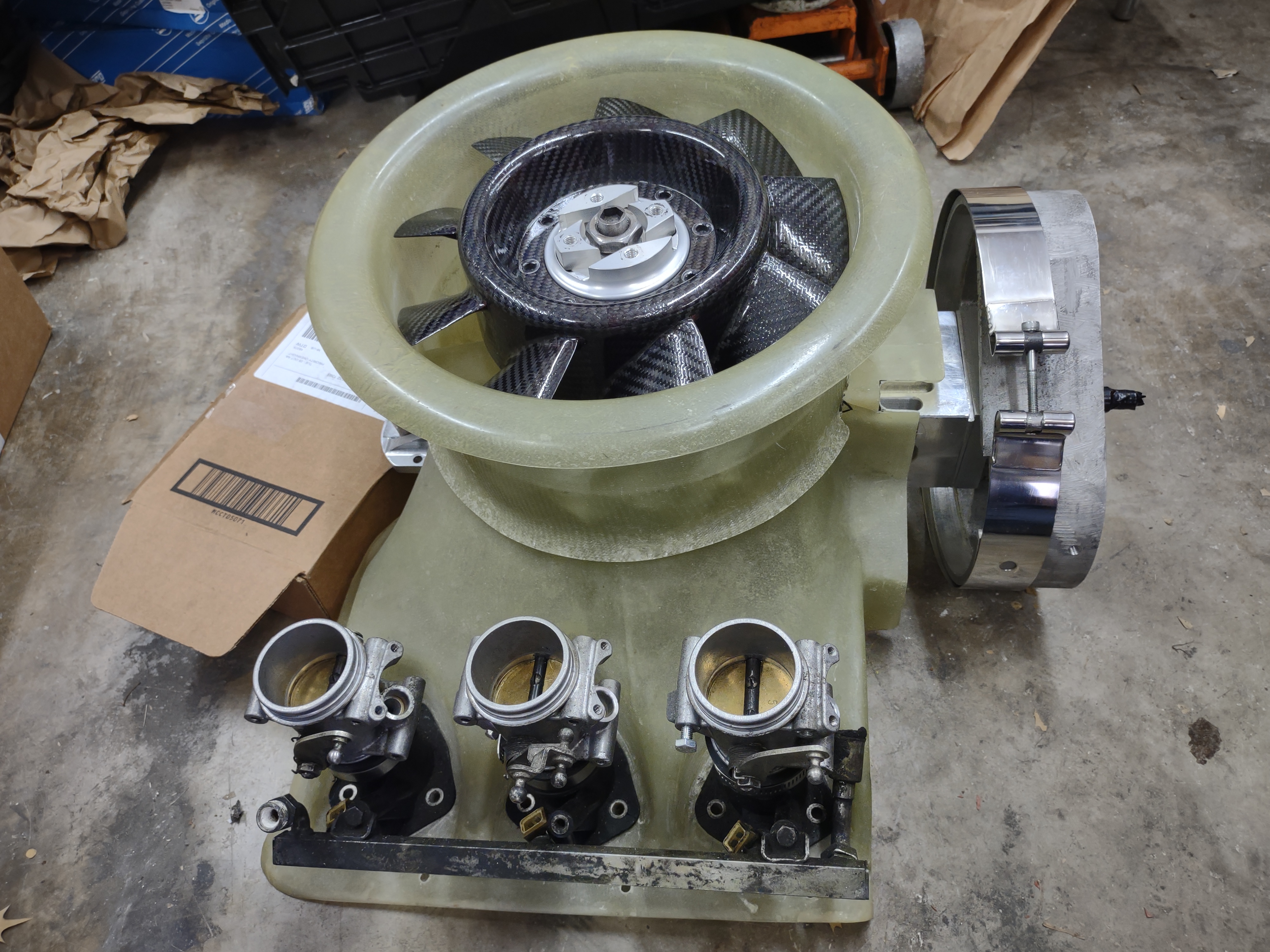 I have not updated this in a long time. Worked stopped on the ac setup due to family issues. Now I am going to drop the motor, and fix the leaking cam box. And I just got an epic case of Dirk Wright's disease. While I am in there, I am going to install this: It is going to be FUN! It will be after the Hill Country tour, and when Betty's 914 finally comes back from the body shop, it moves to the front of line. I'm counting 6, its missing 2? (IMG:style_emoticons/default/smile.gif) (IMG:style_emoticons/default/stirthepot.gif) Nope, only six cylinders. That is a replica of a Porsche 935 fan. It is going on top of the 4.0L air cooled six. The throttle bodies are from a BMW K1300GS motorcycle. I have another set for the other side. I have to make plates to tie the throttle bodies together and provide a mount for the throttle linkage crossbar. Stay tuned... more to come. Clay |