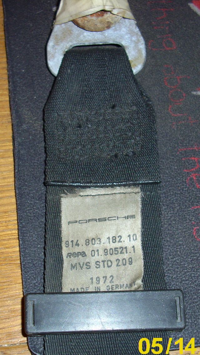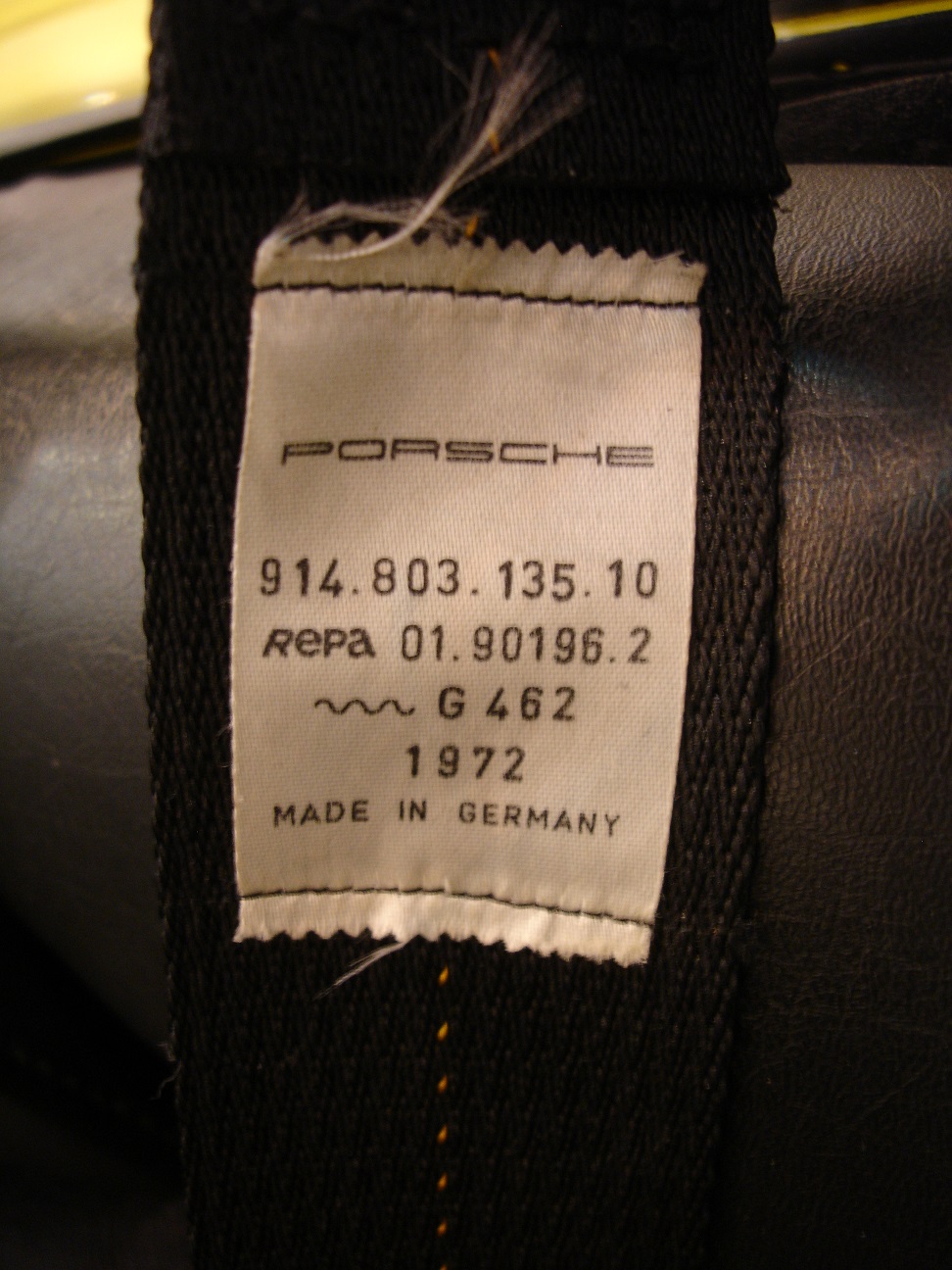 Those are the 4 labels for early non-retractable belts. . the shoulder straps share the same number side to side. . the Lap Belts have separate numbers because they are side specific due to the red release lever positions. Here is what I have for retractable belts. this is on the lower frame rail mount end for the across shoulder retractable belt Hi, thanks. I can't really see your first image too well but it looks like the two identical ones read 914 803 133 10 which I can't find in the PET catalogue ? And why would it be different to the one I saw in the picture 914 803 135 10 , with the G 462 ref below ? |