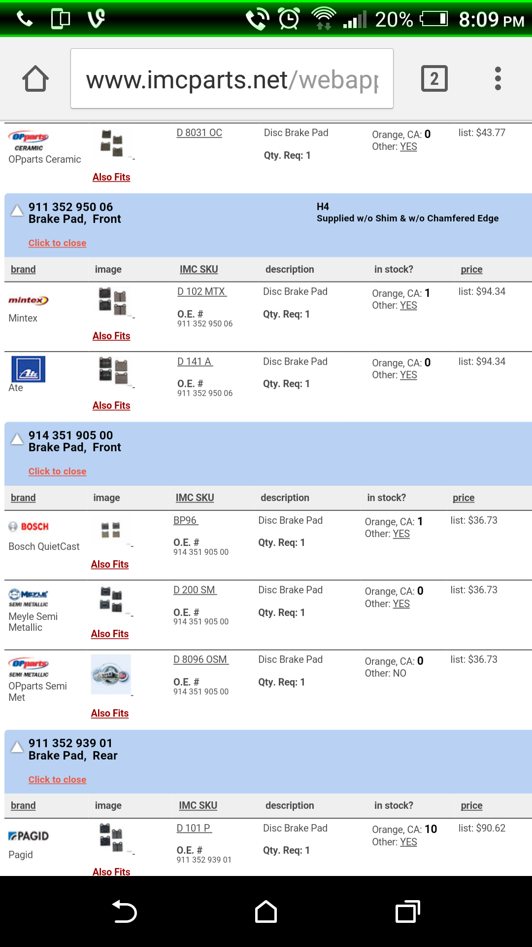 Www.pmbperformance.com But from eric a fellow 914 guy and brake expert Then he will give advice Typically he is priced competitively Thanks. Price isn't an issue since my family owns a shop I get everything wholesale. All the brake pads shown are under 20 a set. Thank you again though. |