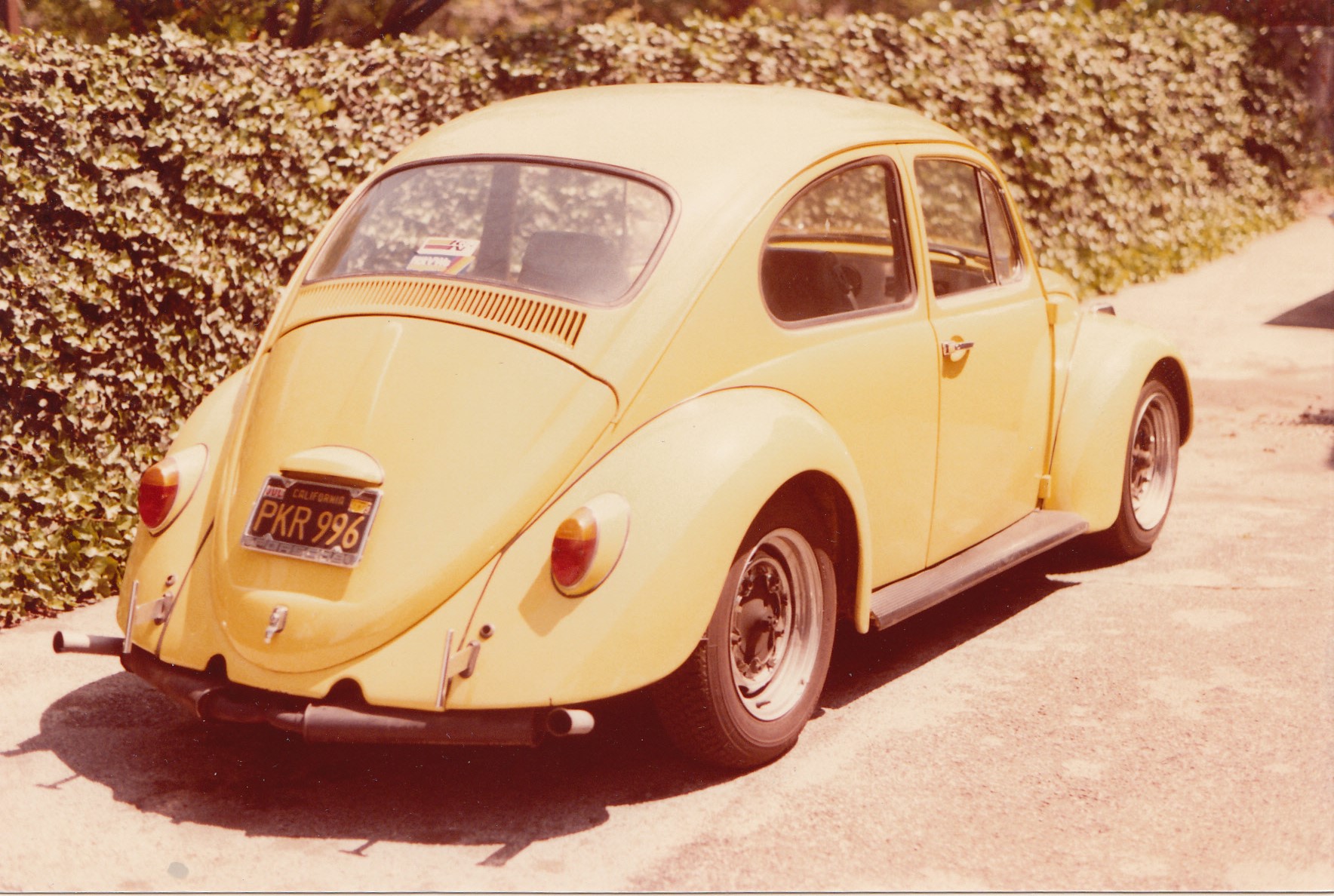 Got this car back in 72 as the "gas crises" forced me to sell my big block Ford. Started out as a dual port Type 1 1641 and ended up 2180. Friend and I started up to Big Bear in January during a big storm to go skiing. Since nothing else mattered except looks and power....( 17 years old is a scary age) we figured that we could make it in my car as it was light enough and handled great in the snow..no chains. Blithering white out near the top of the mountain and a flat tire on the front during the height of the storm. I had decided to run a spare...but...NO JACK. Both of us were able to lift the front end enough to pile some rocks underneath the beam front end of the bug...get the spare on...and hit the powder all be it a little late. Enjoyed fresh snow all day as nobody else could get up the hill. Here is the car in 1977. |