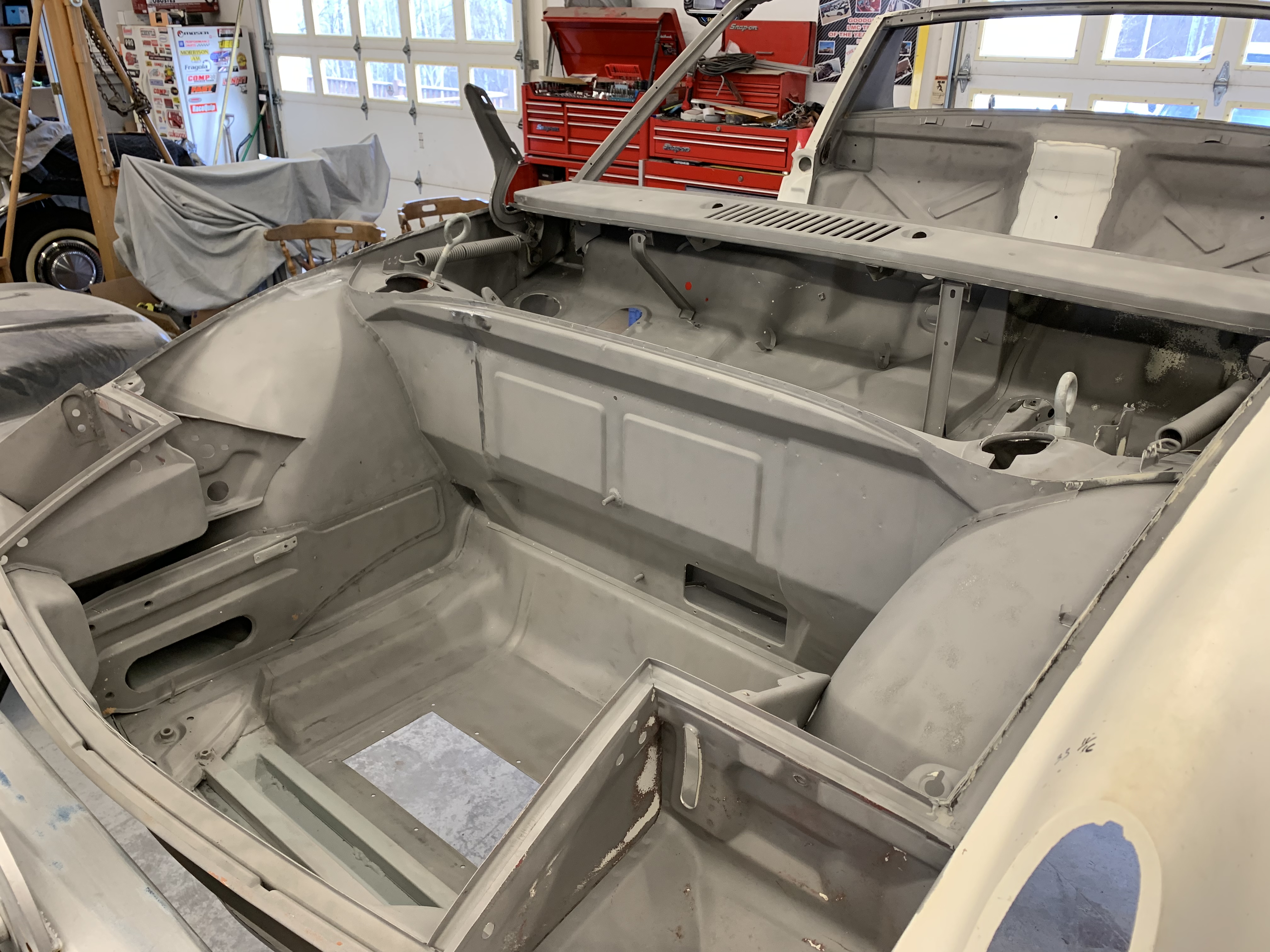 Another six months and my 914 is on the top of the list at the shop working the body. We’ve nearly completed fixing previous poor workmanship and the hidden damage in the front. The passenger side inner fender is replaced, and the body is getting a full strip. During the process I’m adding some reinforcements purchased from Maddogs.