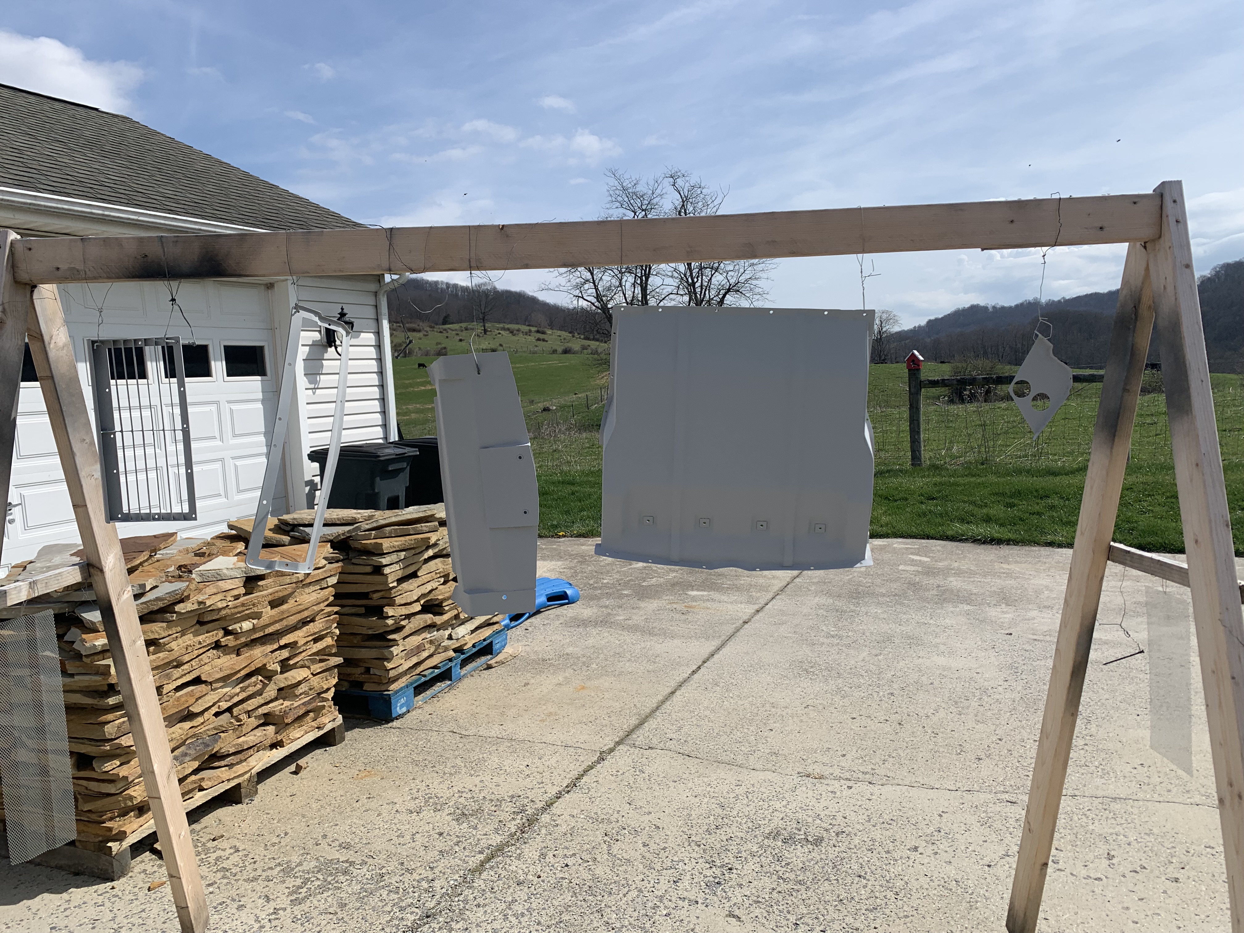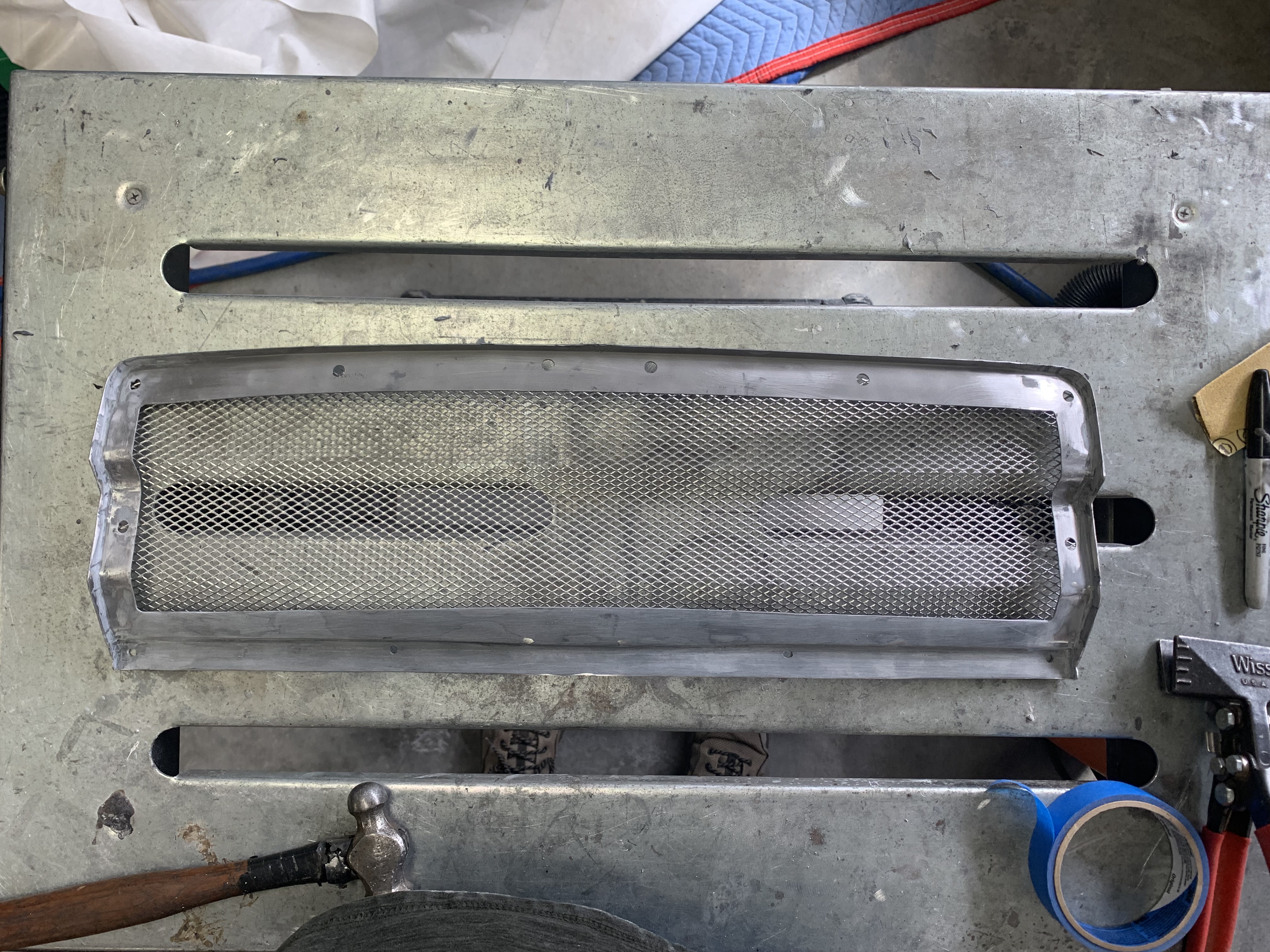 (IMG:style_emoticons/default/icon_bump.gif) (IMG:style_emoticons/default/popcorn[1].gif) How's the oil cooler install going? Warm weather pushed me outdoors for several days - had to trim trees and plant a few more. Anyway, here’s a pic of the grill. Just need to attach the mesh to the frame and paint it. Also, I’m still waiting on Elephant Racing to send me some hose to complete the fit up of the oil lines to cooler connections. After I get the hose, I’ll cut them to length and orient the connections correctly before sending them back to elephant for crimping ( I can’t find anyone near me to crimp them). Go to a local hydraulic shop. We do this all the time when we need custom hoses done. I don’t agree with your statement about replated hardware. I have had a ton of hardware replated without any issues. I actually put a torque wrench on a bunch of new and replated hardware and without fail, the used/replated hardware was as strong and typically outlasted the new stuff. That’s not to say that every shop is plating it correctly but all the hardware I have has been fine. Even replated springs seem to be fine. |