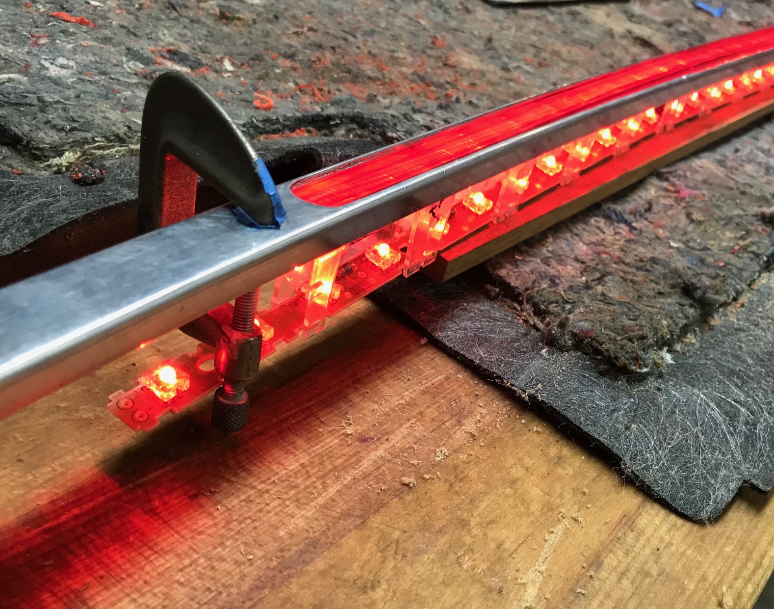 I have a spare crossbar trim piece and plan to do pretty much the same thing with a wide LED strip. My only fear is cutting the opening - not sure of the best method to accomplish the task.