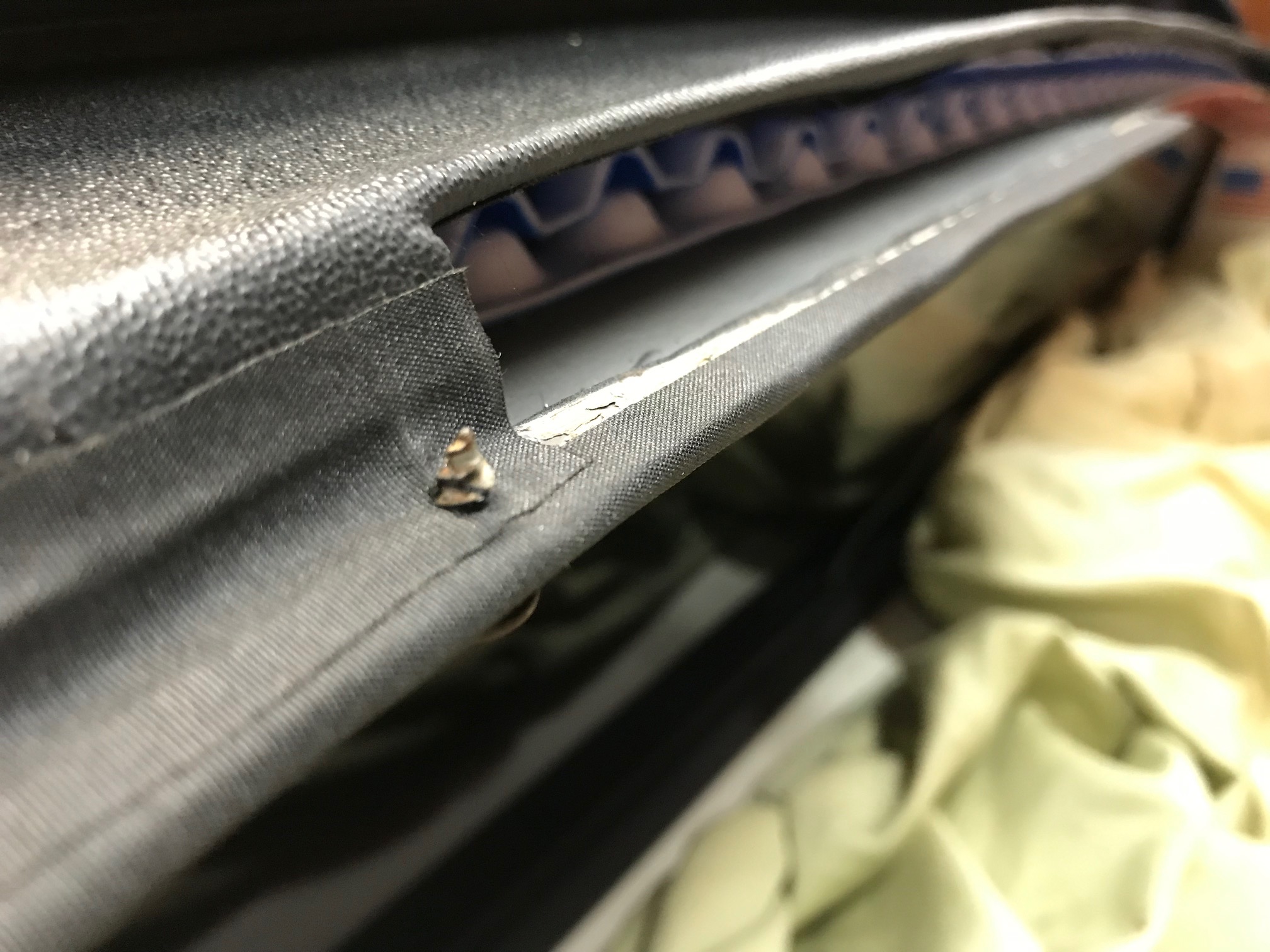 This is from the back side of the trim. The black tape hides any bleed through when the lamp is on between the trim and roll bar.