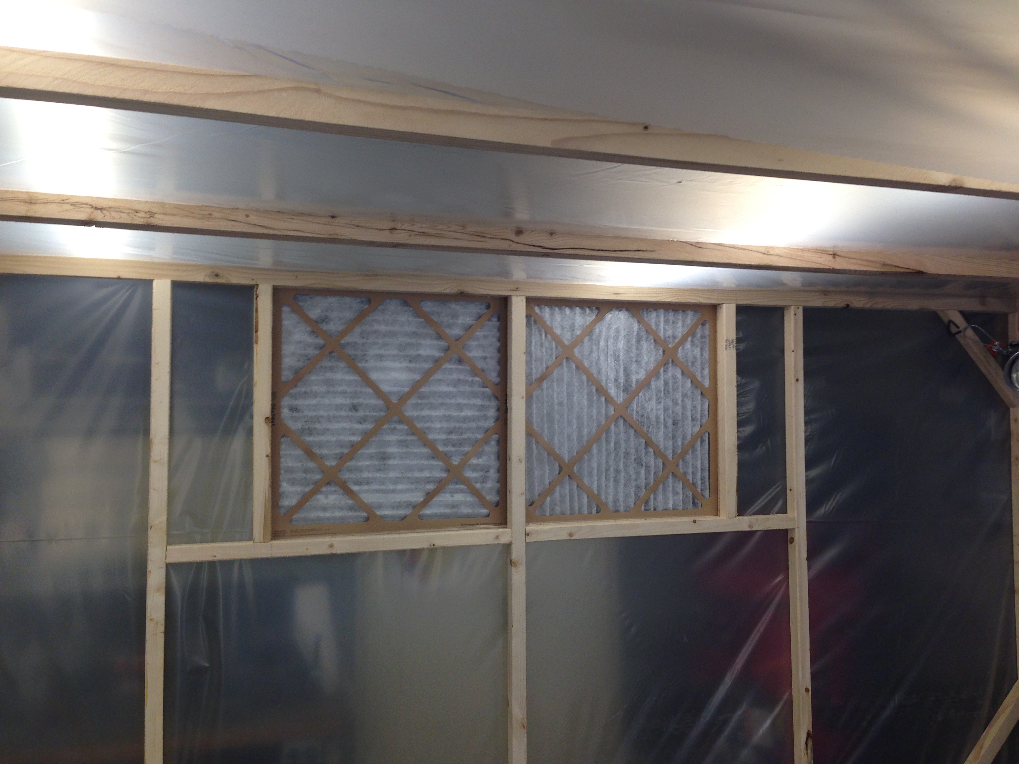 Your air in should be filtered. Standard house filters work great once. The issue is you want to eliminate dust and bugs. Run the fans the night before to draw out all the bugs/dust. Also setup the inside 100% for your paint and gun and cleaner. Give yourself at least 3 feet to walk around. |