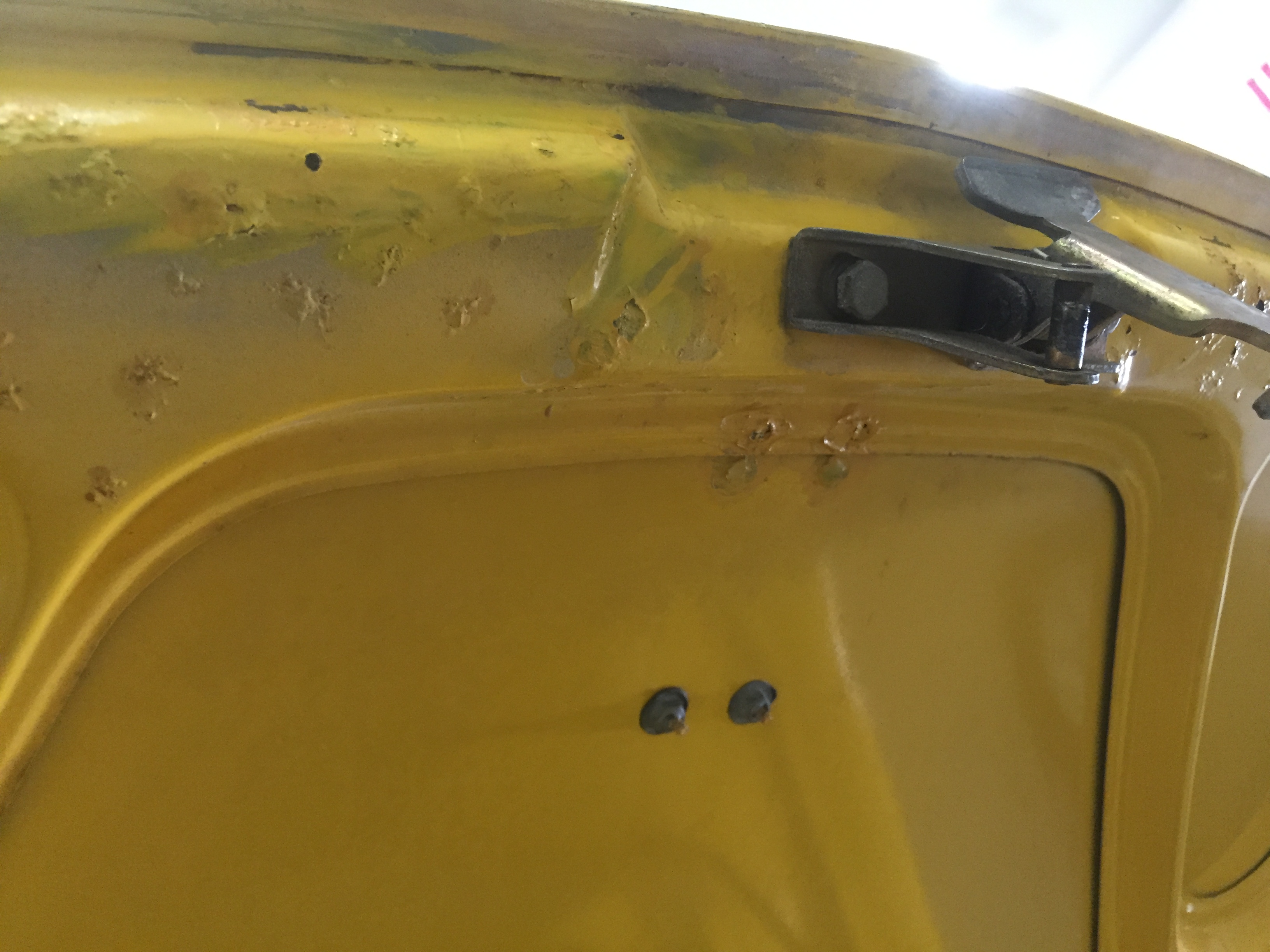 Get a better hood to start with. . what about all the rust you can't see with all those rust bubbles showing underneath. . chances are if you don't weld the old badge holes up, it will eventually crack again in the same places (IMG:style_emoticons/default/agree.gif) with the above. Your hood has rust. It all depends on how far you want to go. In the early days I tried to fix a hole in a hood for an mg. not saying I couldn't have made it work. Maybe now I could? But I oil canned it with every weld. Really depends on what is wrong. I checked around the web, and unless I don't know how to search (always possible (IMG:style_emoticons/default/screwy.gif) ), 914 hoods weren't growing on trees, and the few I did find were in much worse shape than mine, or on the other side of the country with no shipping requiring pickup only, or both....... just sayin....... (IMG:style_emoticons/default/smash.gif) |