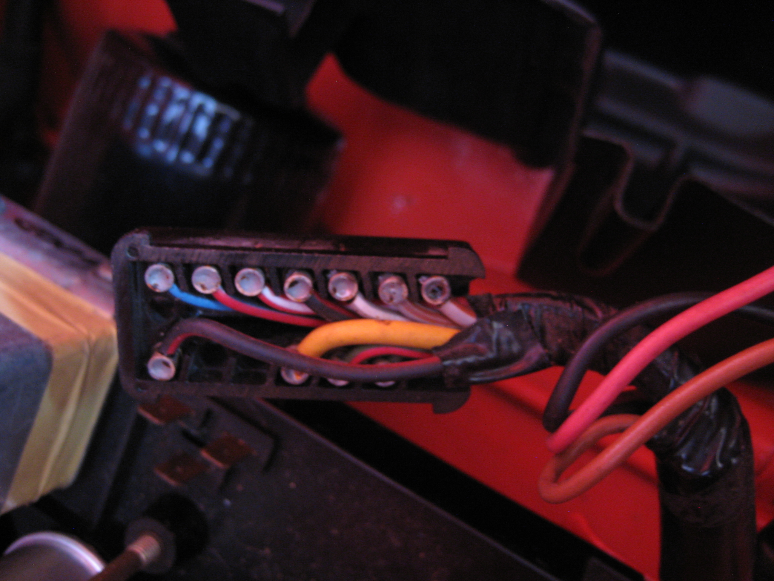 I took a picture of the multi-pin connectors with the caps removed but....you've got some non-original wires there.