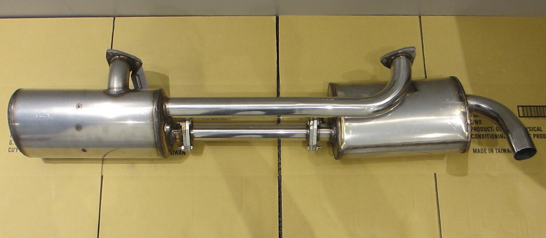 From the first picture I thought "Wow, I know where I would put the O2 sensor bung!" And then someone did it! I want one of these for a 1.8 set up. I don't want to bug Dave until I'm ready to purchase. What should one expect to pay for one? I know Dave is the best source for this number, I just wanted to get a "range" to compare it to other systems. It looks like two glass packs with a hollow exhaust plenum feeding them. Am I correct in my assumptions? |