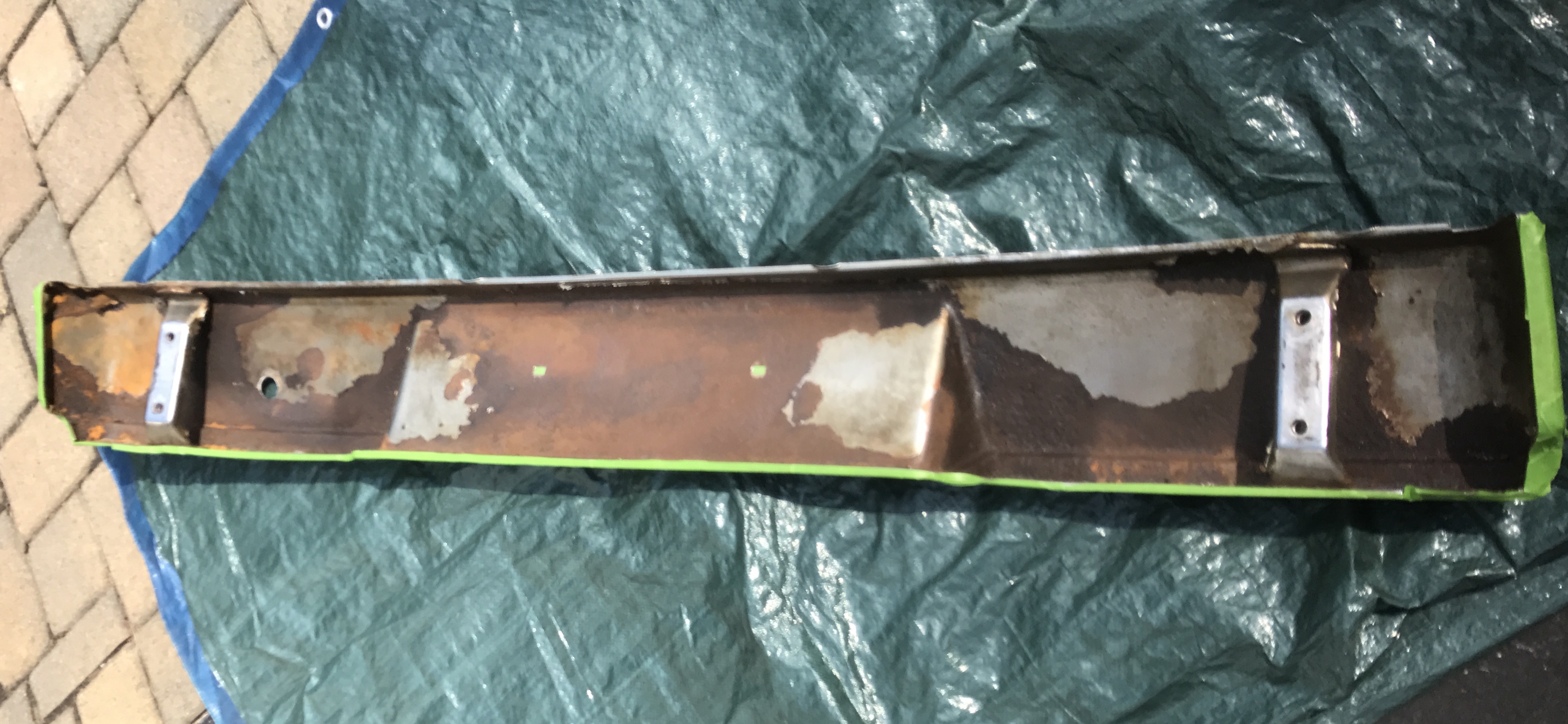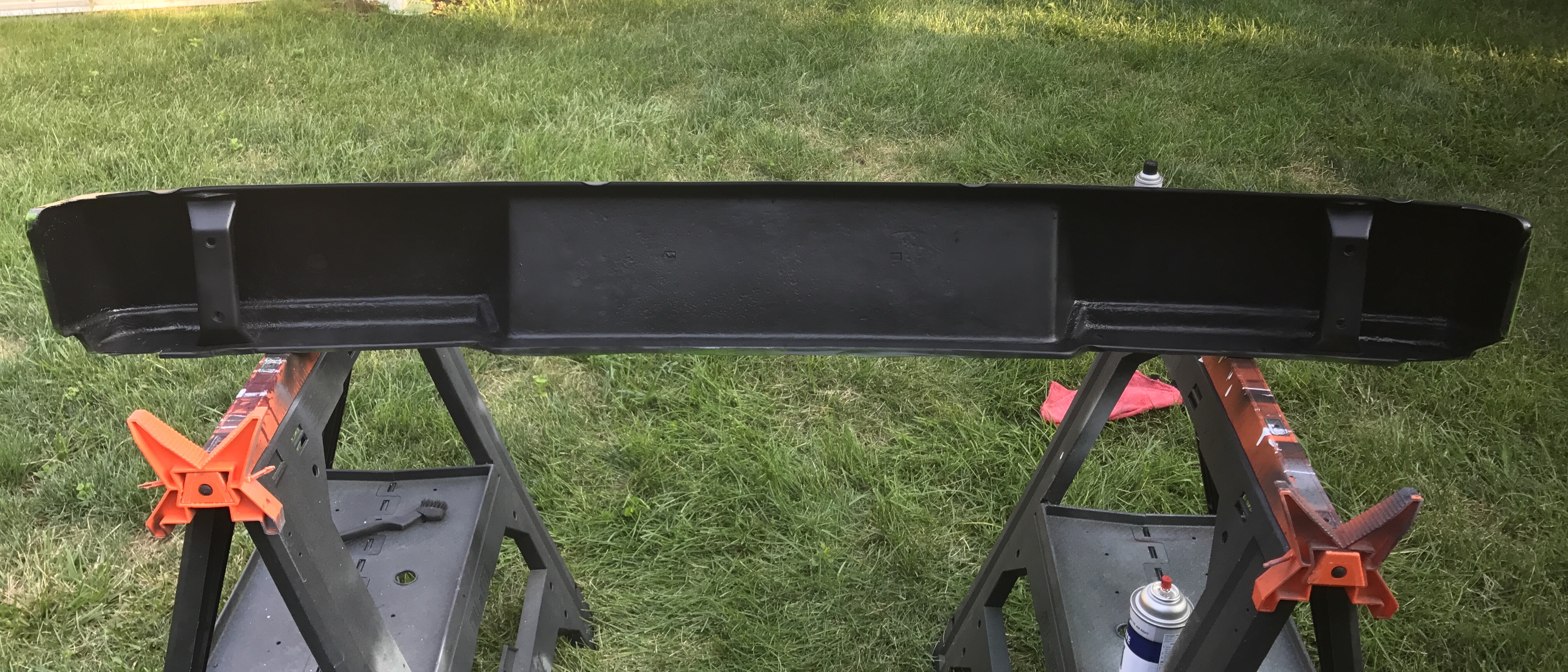 Rescuing an early bumper. Rusty backside. Sandblasted, some flap disc work. Rust encapsulater from Eastwood. Then some paint. Chrome side is.... well it's better than