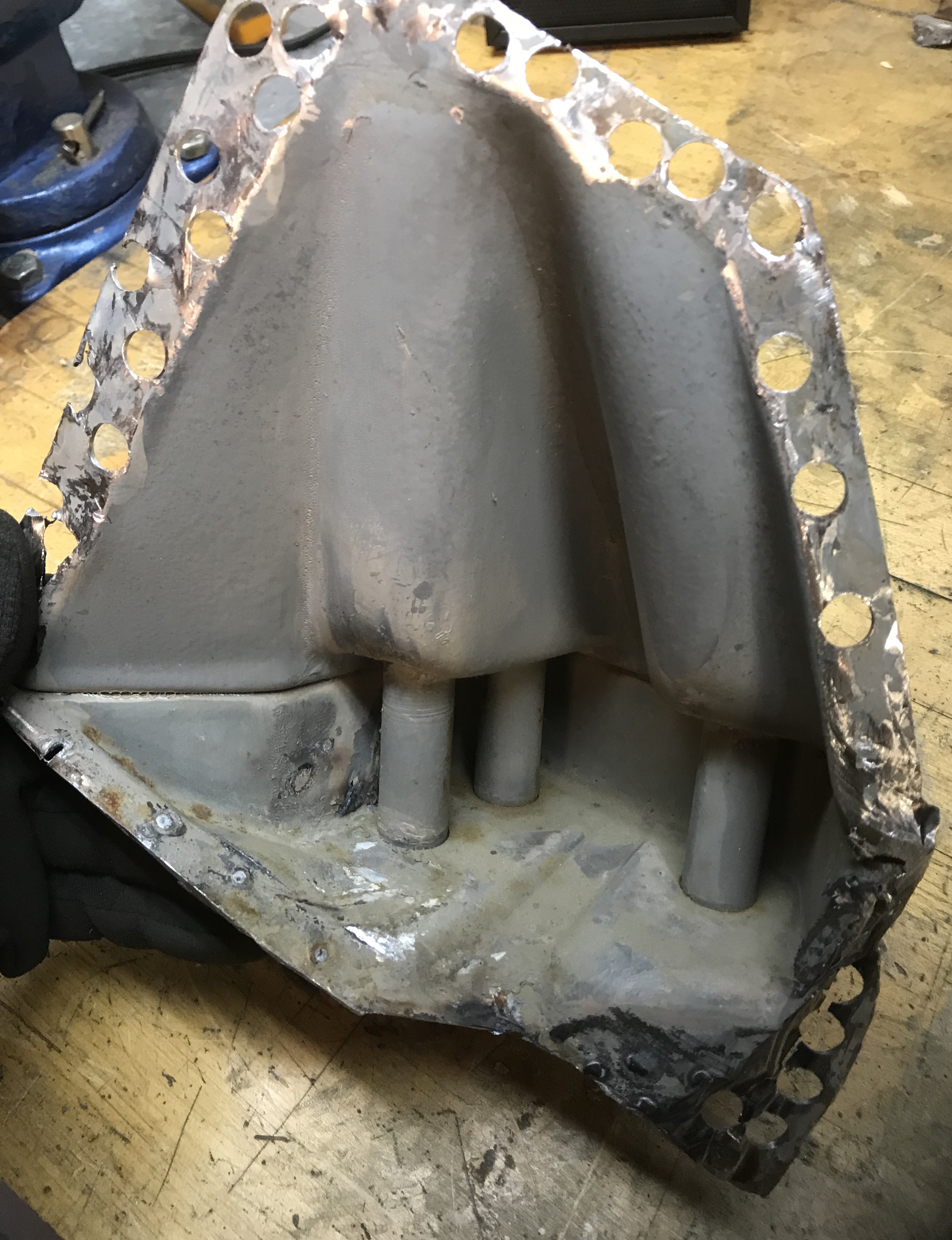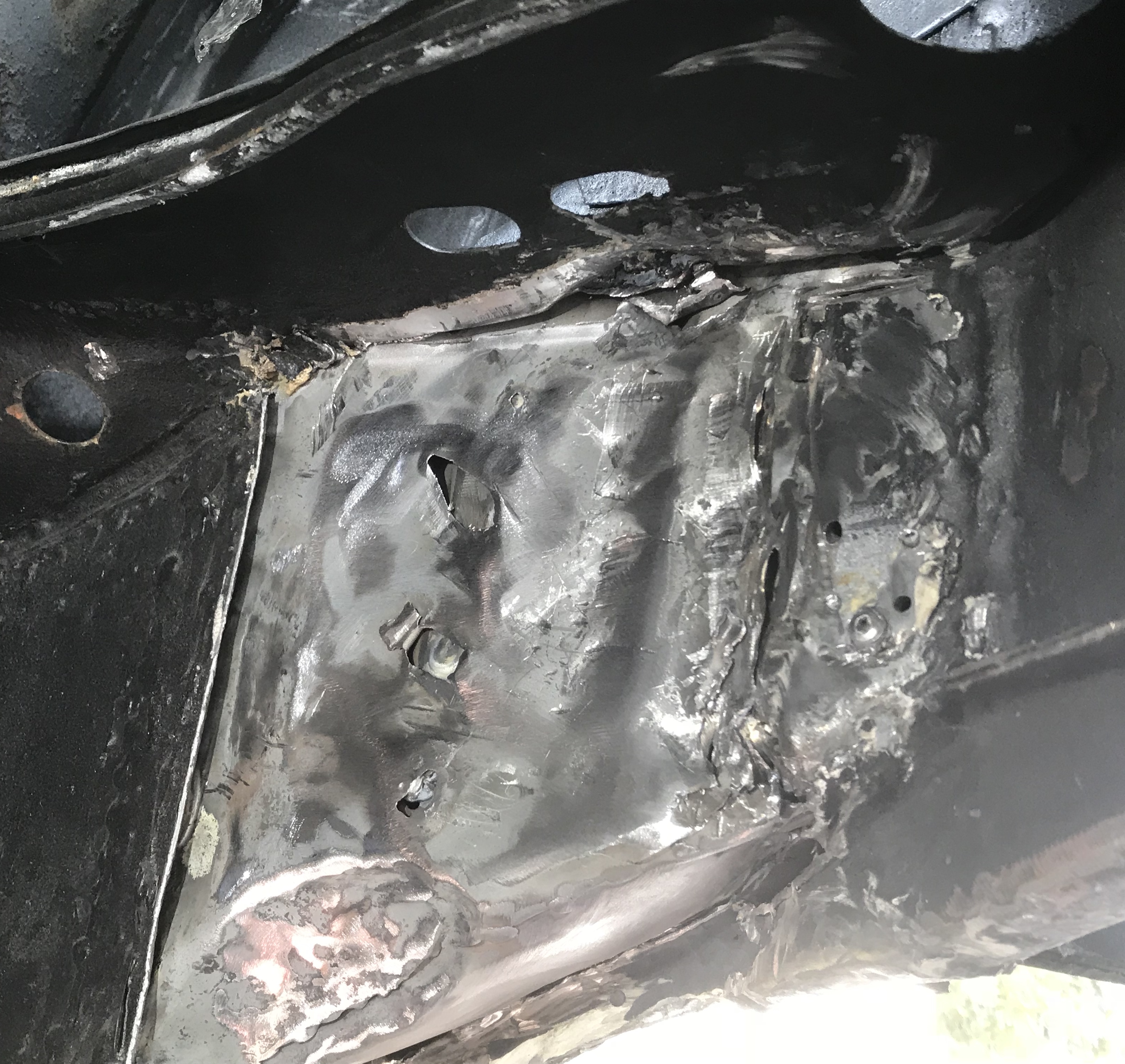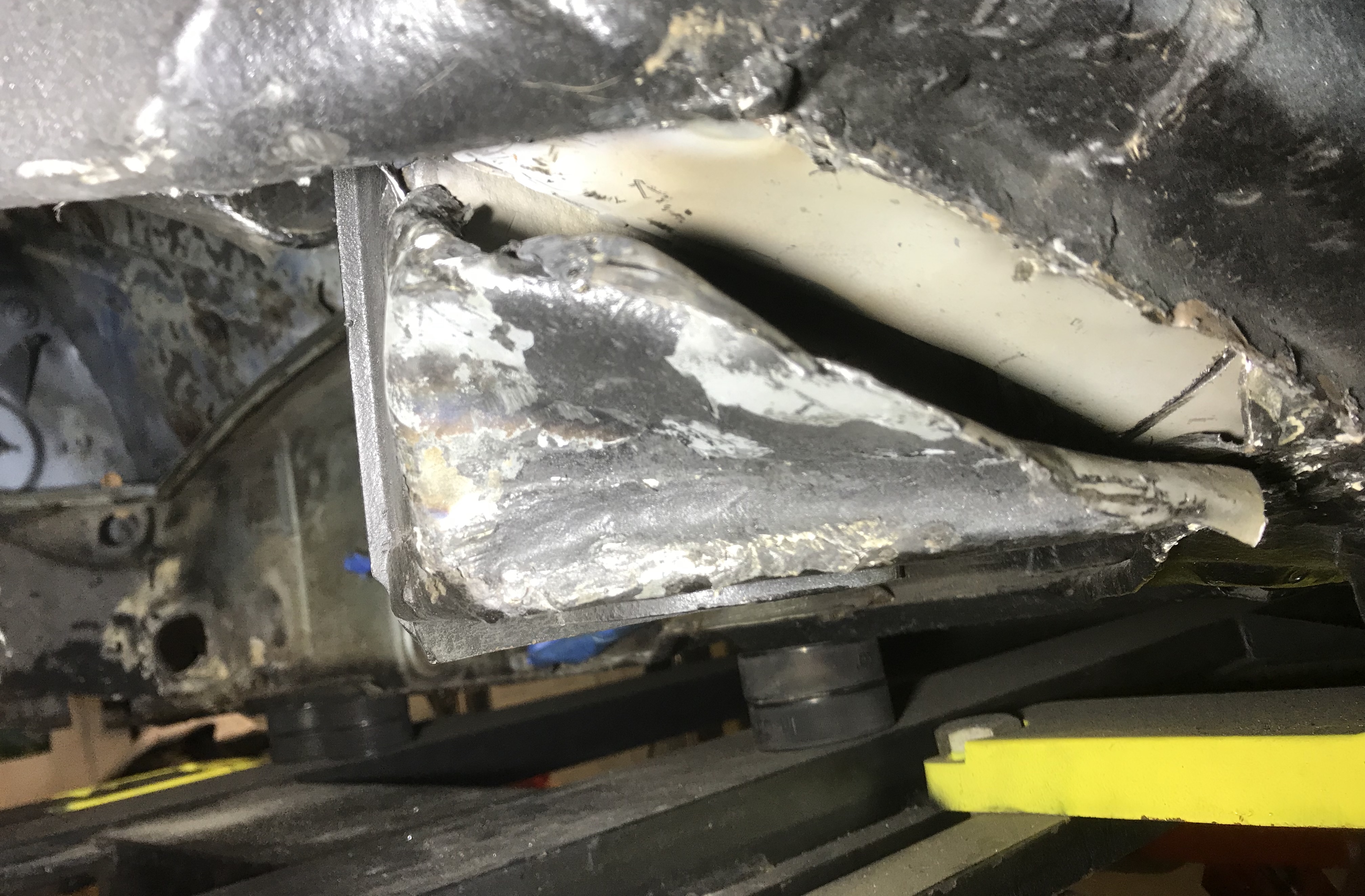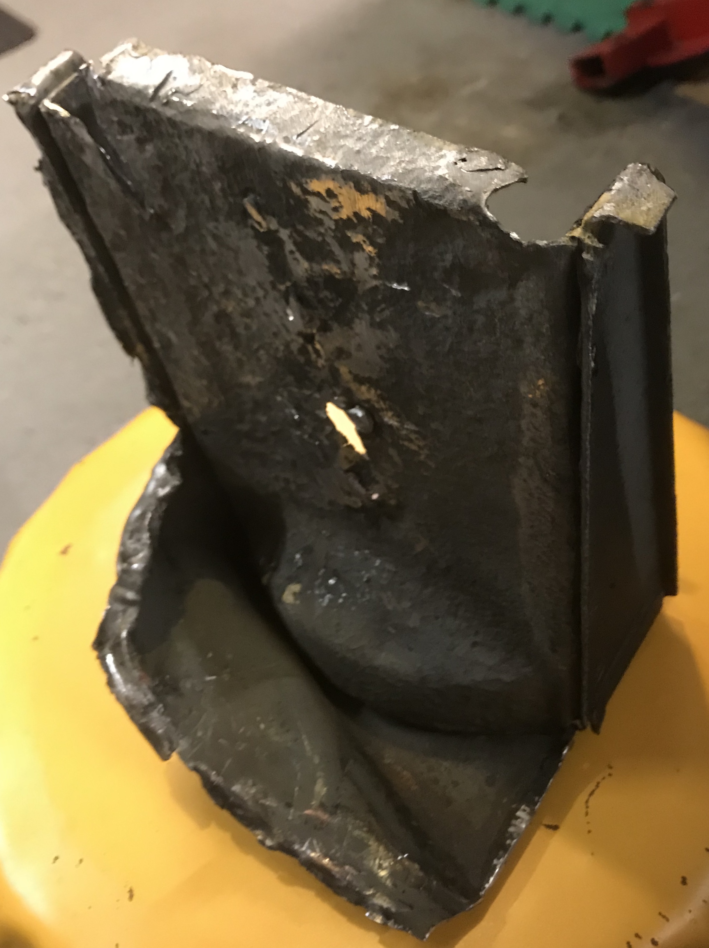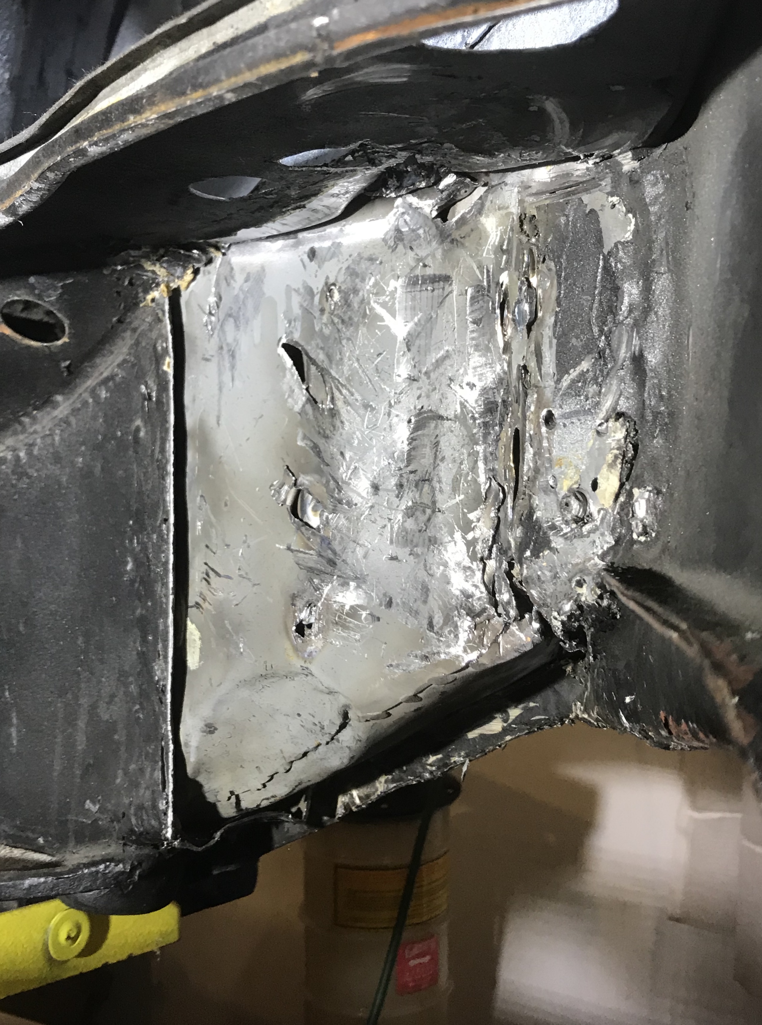 not destroy it upon removal. A cutting torch I reckon would make quick work of it but I’d prolly set my car on fire! I’ll post a pic of mount if any one would need of it pm me and I can take a few more pics of it for you. The top of the mount was tied into engine shelf/long as well as 4 spot welds. Totally unlike the left. You can see in the pics how the right side was repaired back in the early nineties when I had a pro shop do the hell hole and reposition my suspension so the right wheel would not have EXTREME exaggerated camber! That’s when I learned of the hell hole troubles. Looks like they did their best at the time. No rust. But not factory like :-/ So I’ll get to welding up the right side deficiencies hopefully this weekend. Attached thumbnail(s) |