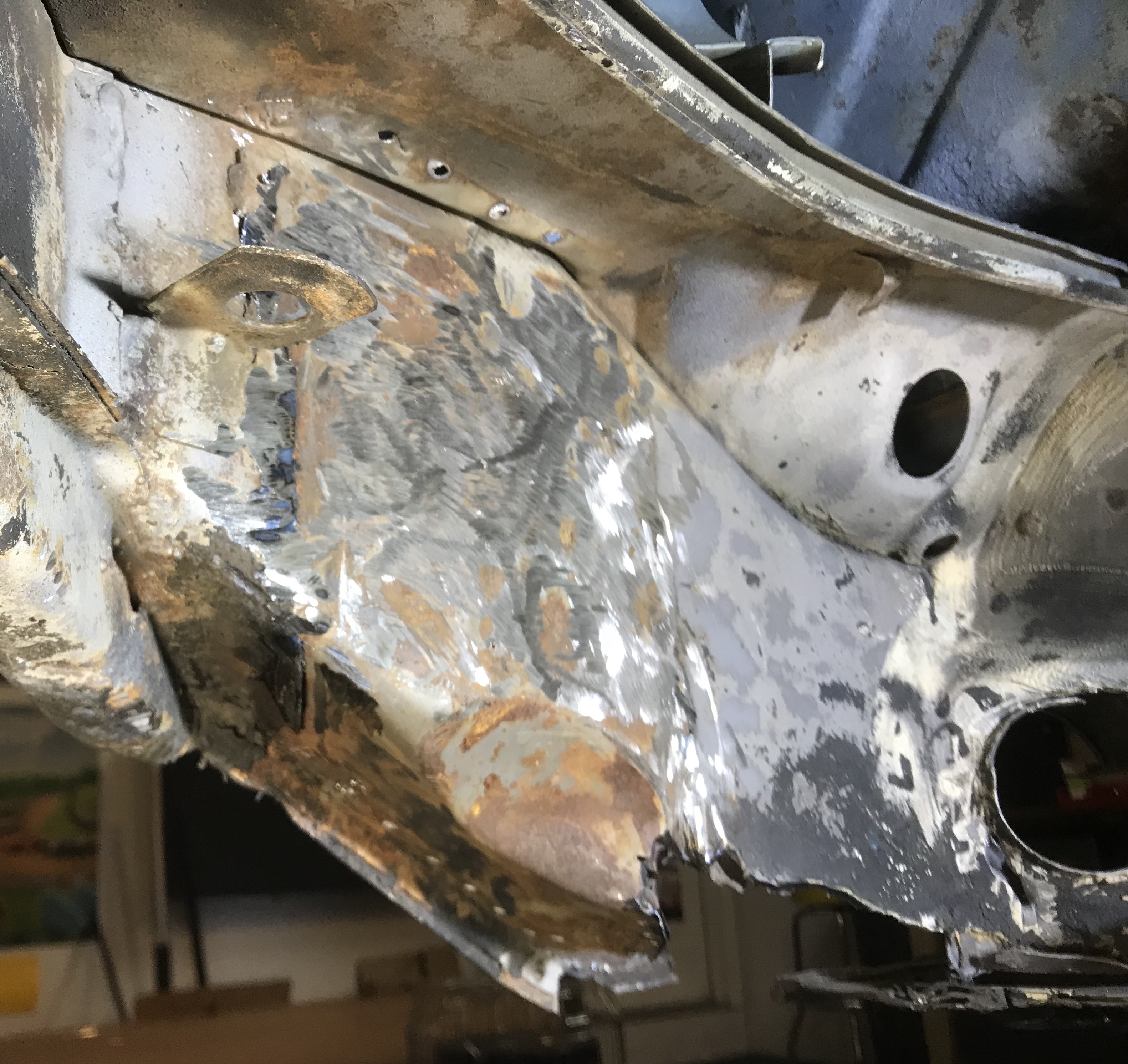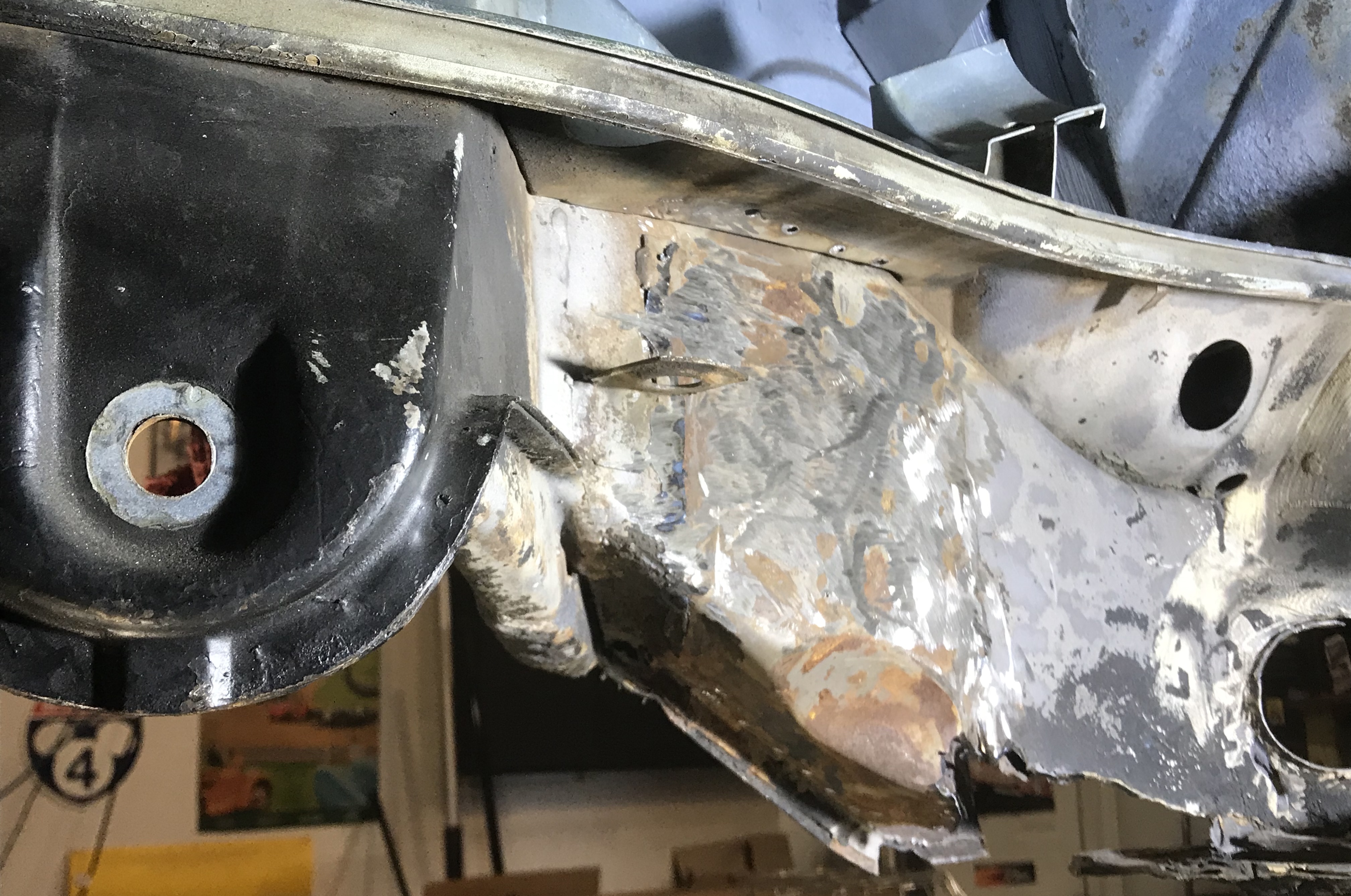 drivers side. What a true mess this side of longitudinal this is. Thankfully for Chris’ part of console and the parts from Restoration Design all can be remedied. Tiring and tedious job removing mount. I wasn’t able to save it. I hope to save the right mount in case someone would need it. It is in far better shape. Attached thumbnail(s) |