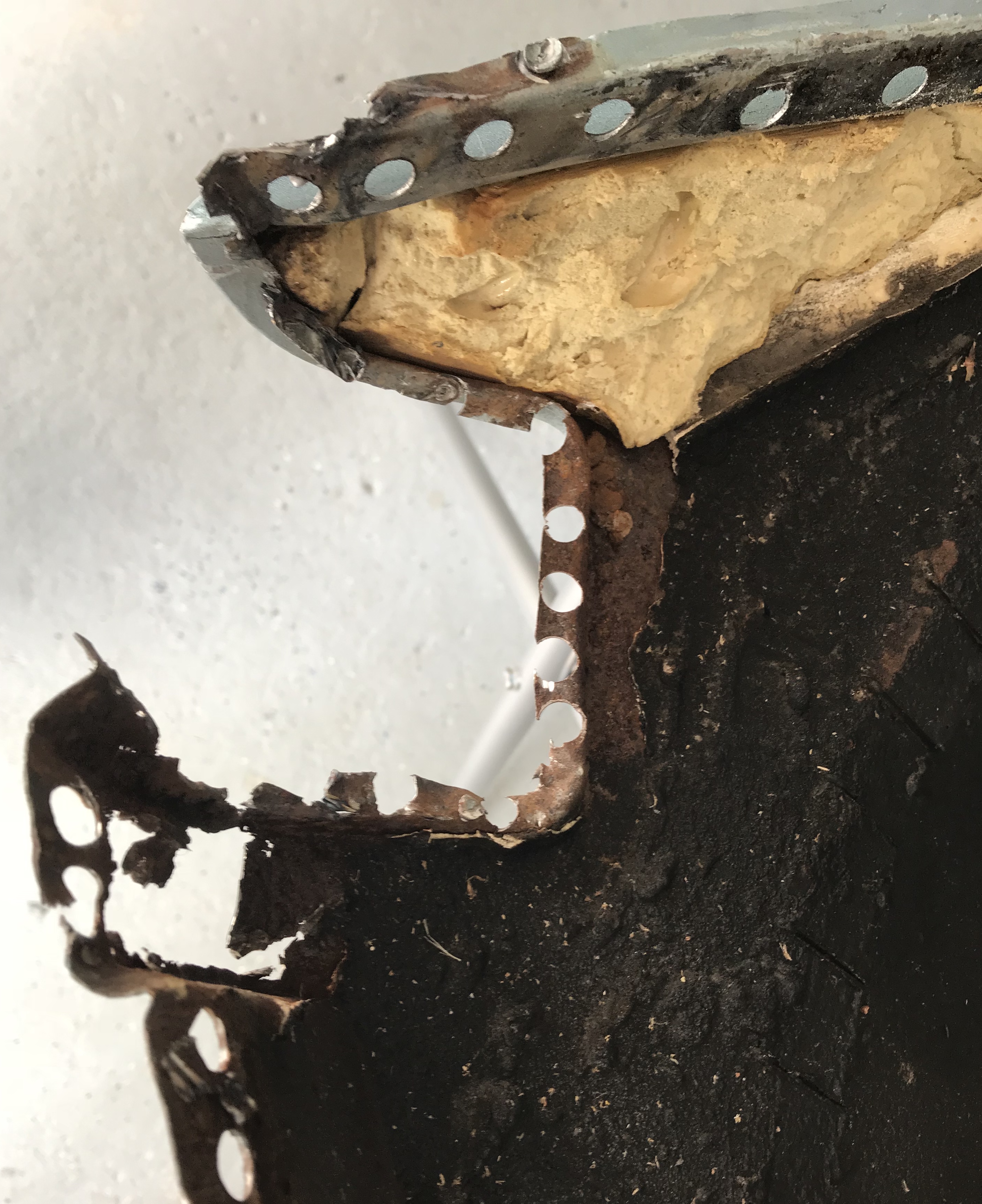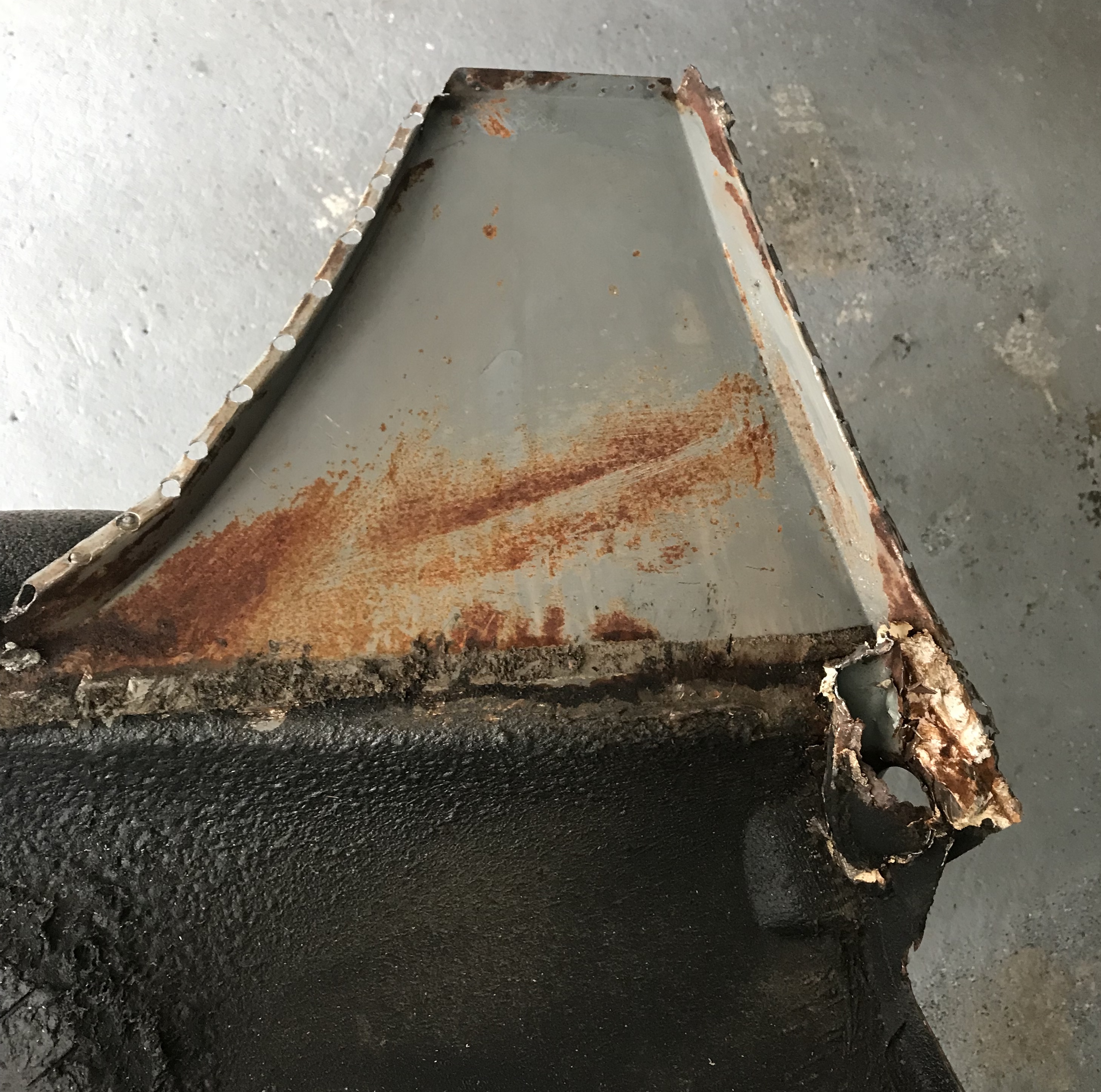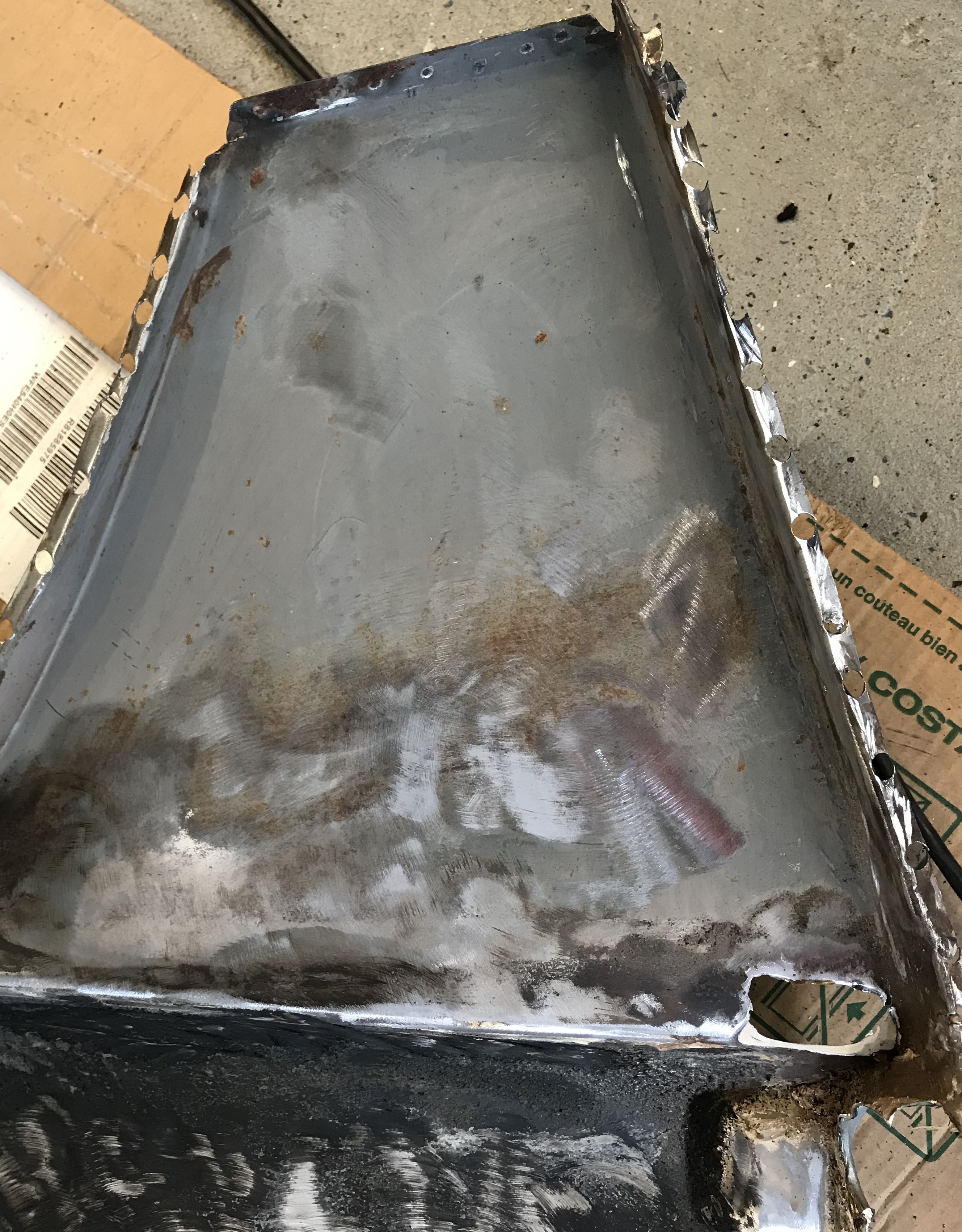 Pulled it out of the scrap pile. It's a bit crusty under vent tube but looks like it might clean up and cover the area you need to patch. If you think it has promise, I can hit it with the media blaster this evening and send more pics. If you decide you want it, pm me with your address and how much you want cut off and it's yours.