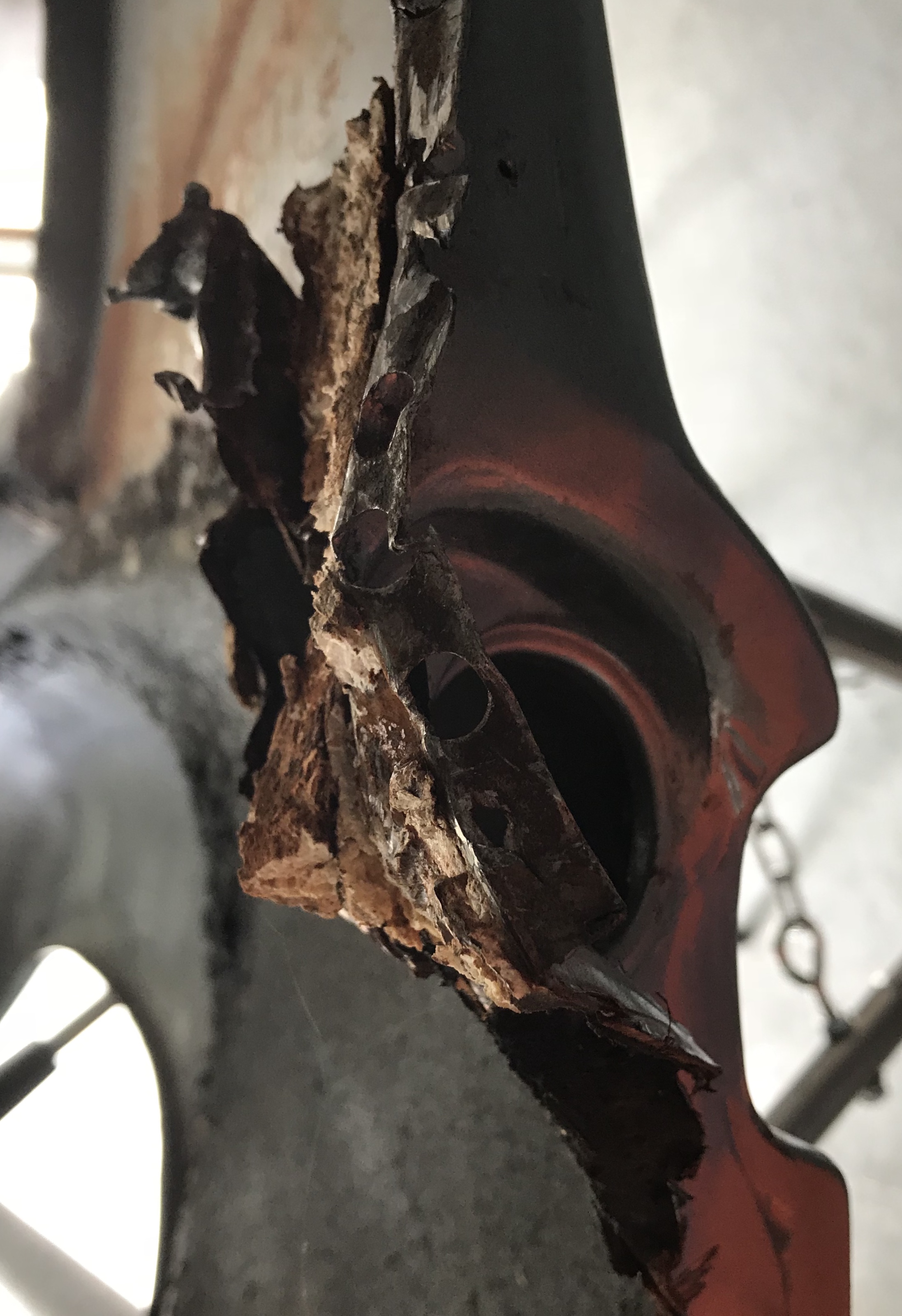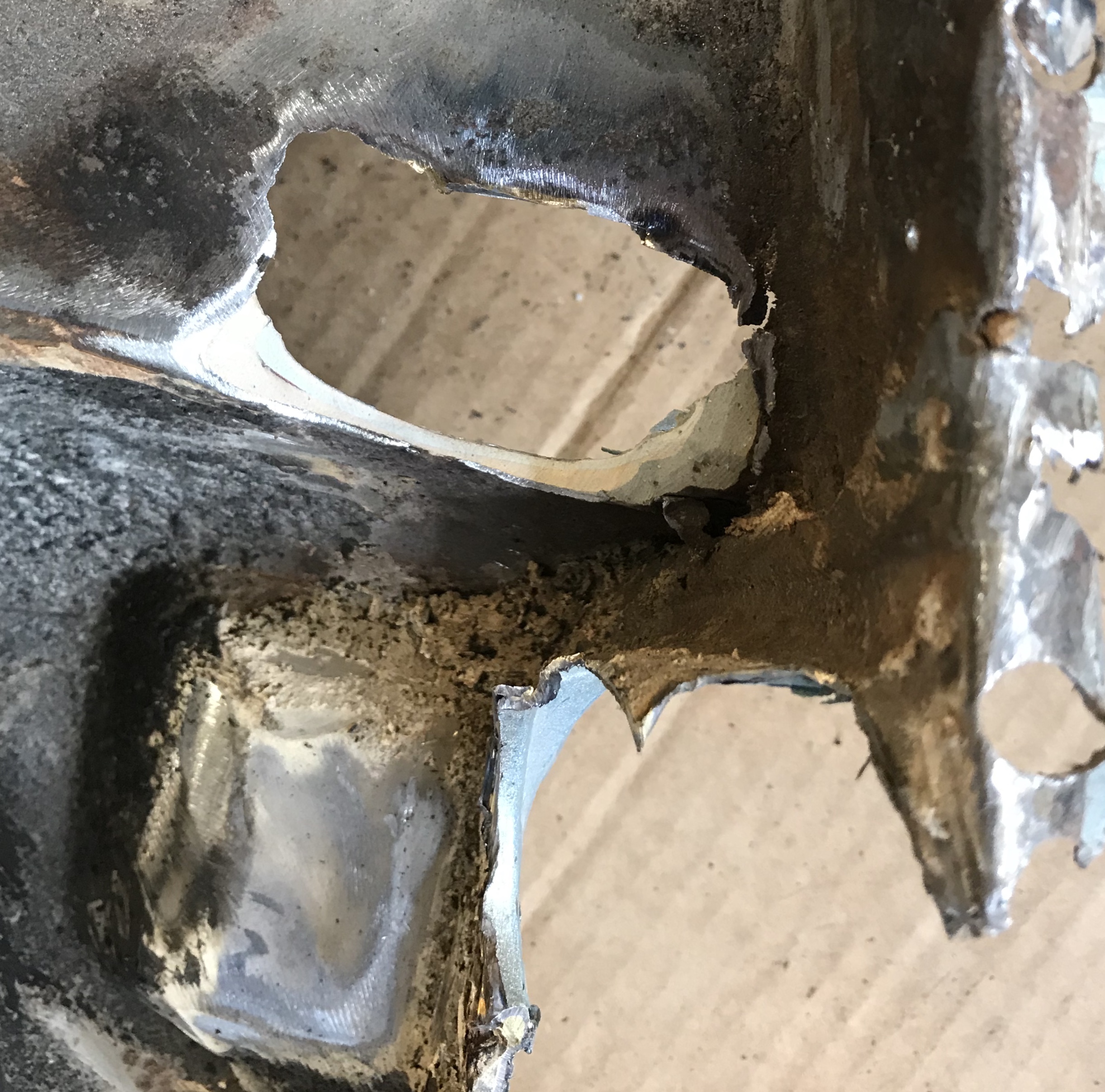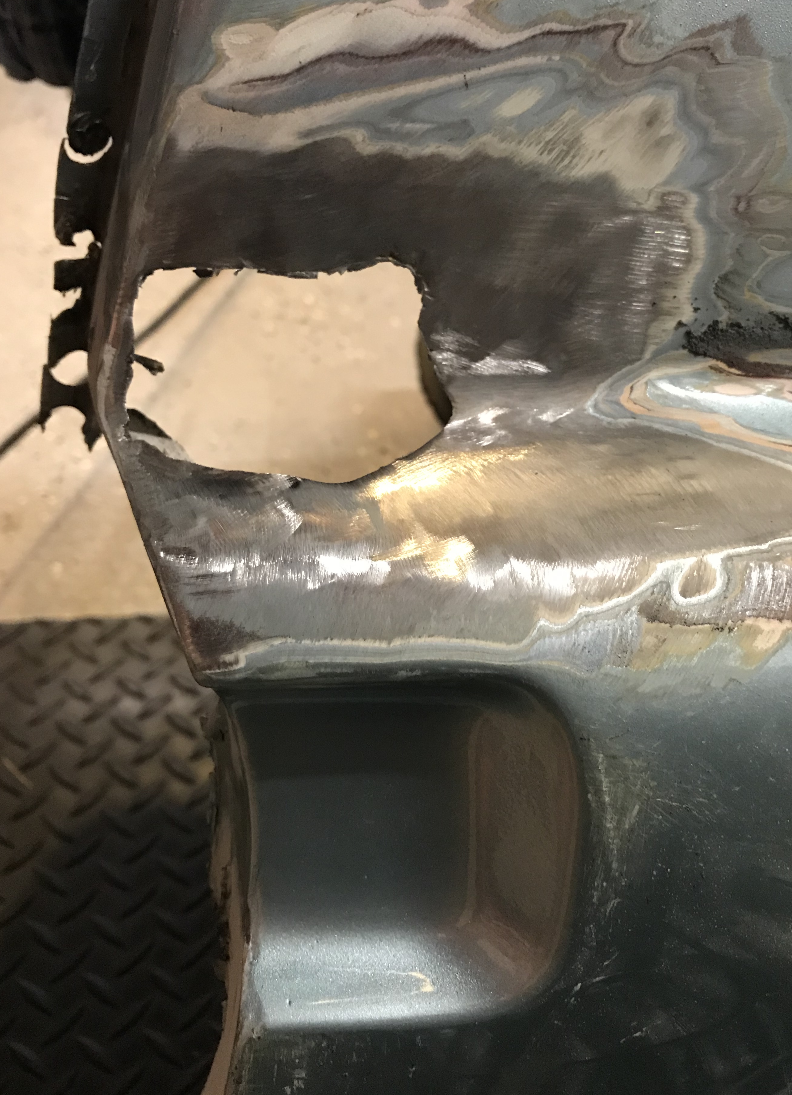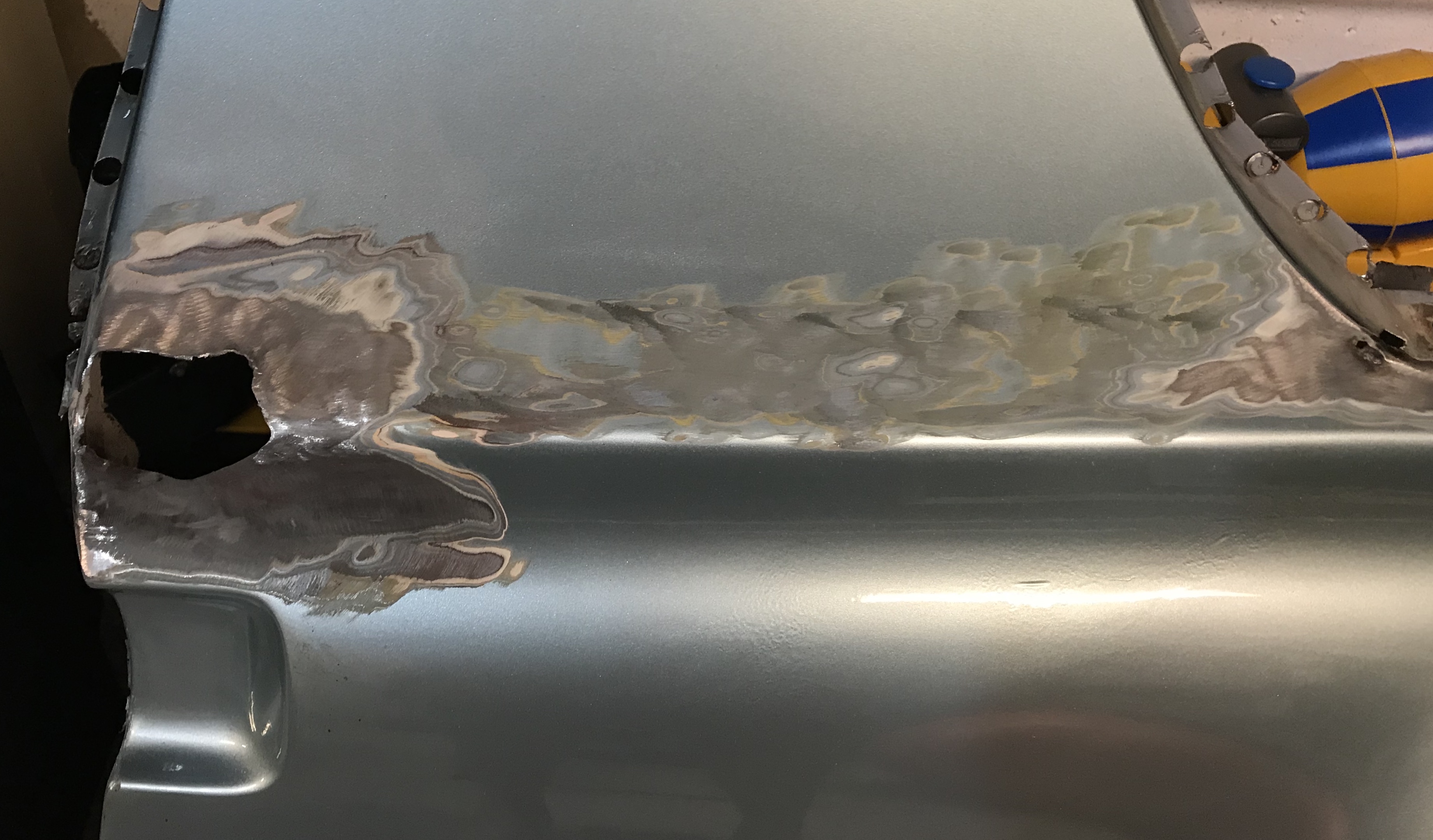 Removed the undercoating with heat gun, left the flare alone since that is paint and not tar. Found yet another hole lurking. Apparently minding its own business till the flap disc found him out. Oh how I miss my complete car..... Oh well we are here to make it whole again. There is a nice chunk missing by the tail lamp I’ll be utilizing a good piece from Garold. I’ll prep that next week hopefully. So some before and after pics: Attached thumbnail(s) |