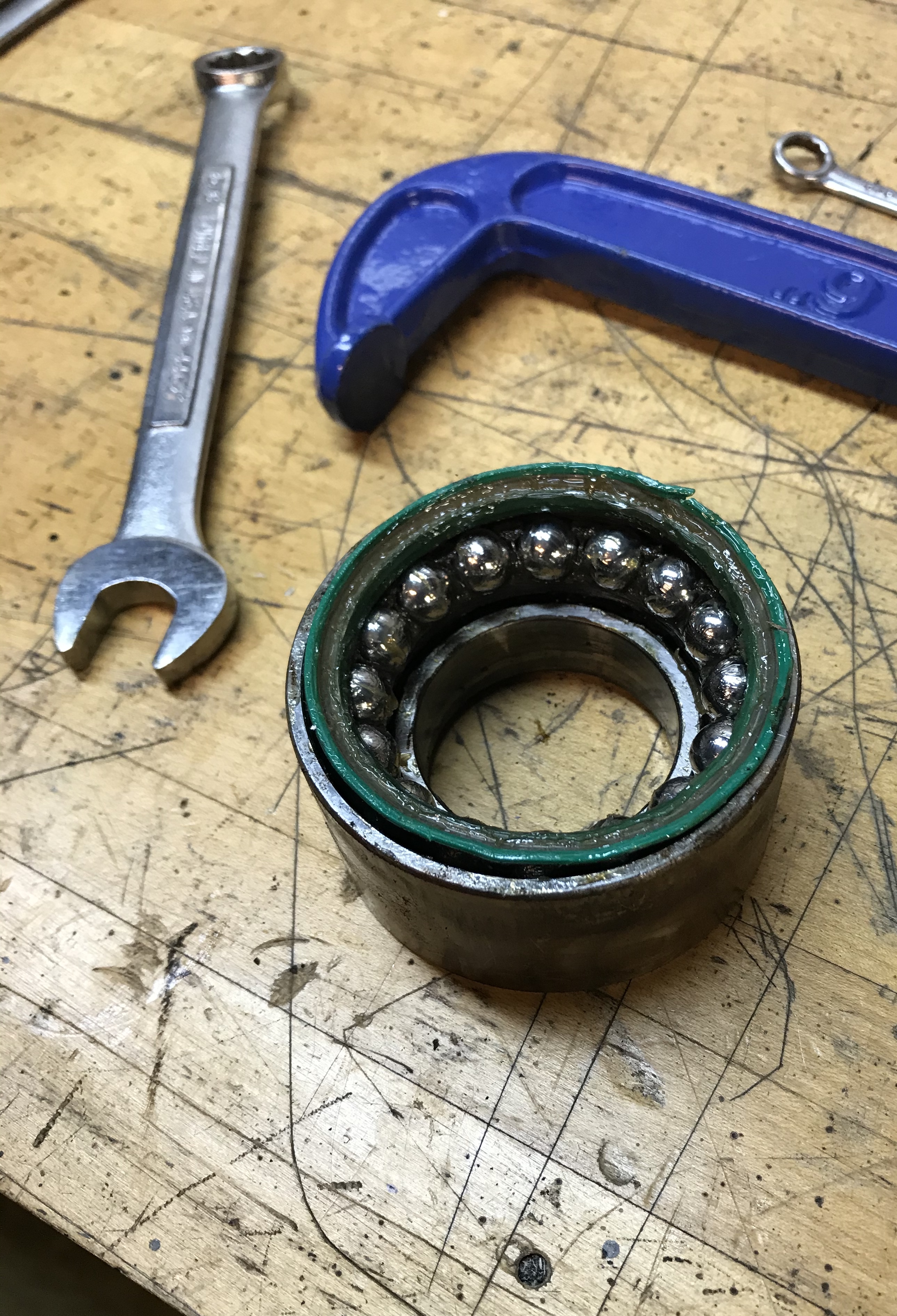 Then to get the race off that is left behind on the hub. I followed PMB excellent and entertaining vids to make life easier. Thanks Mr. Shea! Applied a little MAP gas to heat the hub race and cold chisel it off. Attached thumbnail(s) |
