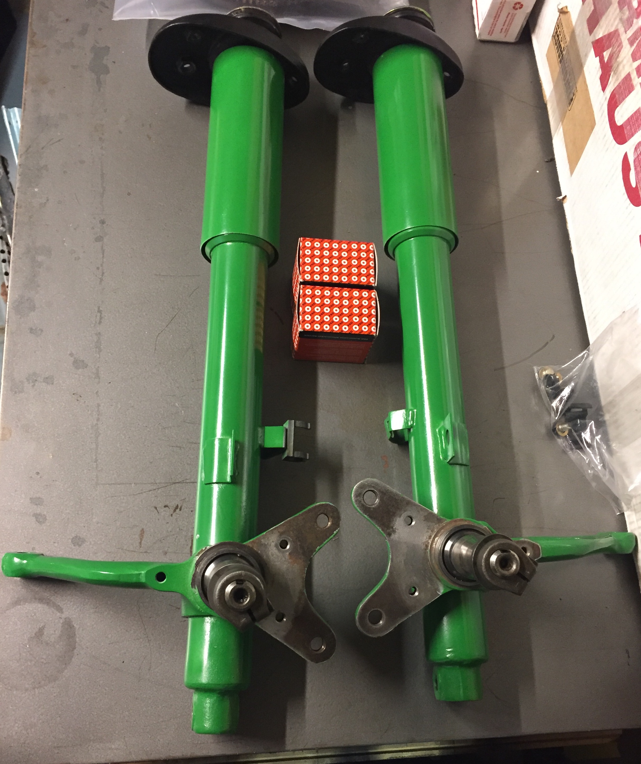 snow is on the ground. It's been slow progress. My kerosene heater is having a hard time keeping up. I'm also waiting for my electrician to be available to run a dedicated line for my new compressor. So doing some other jobs. Obtained some "past it" Fuchs to roll the car around for when the weather breaks and commence with the sandblasting. Also working on front struts. They are renewed and painted. Proceeding with placing new bearings in the 911 hubs so I can have the front suspension done and ready to bolt in. Have some minor work to do on the six engine as well. I'll update accordingly. Cheers! Attached thumbnail(s) |