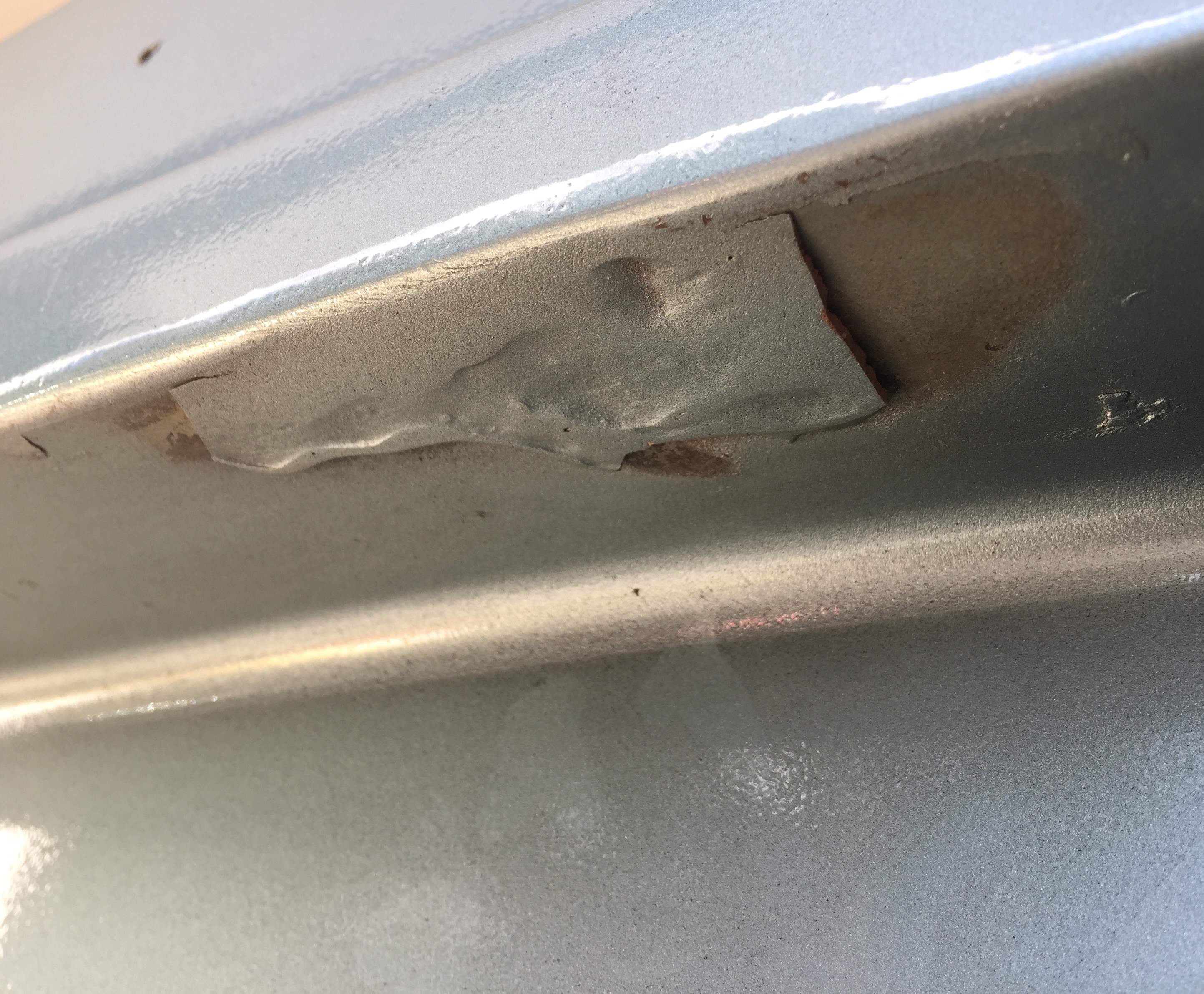 Popped it off to find a strange upward dent. No idea how that would ever happen since it behind the rubber cap of bumper top. So hammered it back to more appropriate shape. Attached thumbnail(s) |