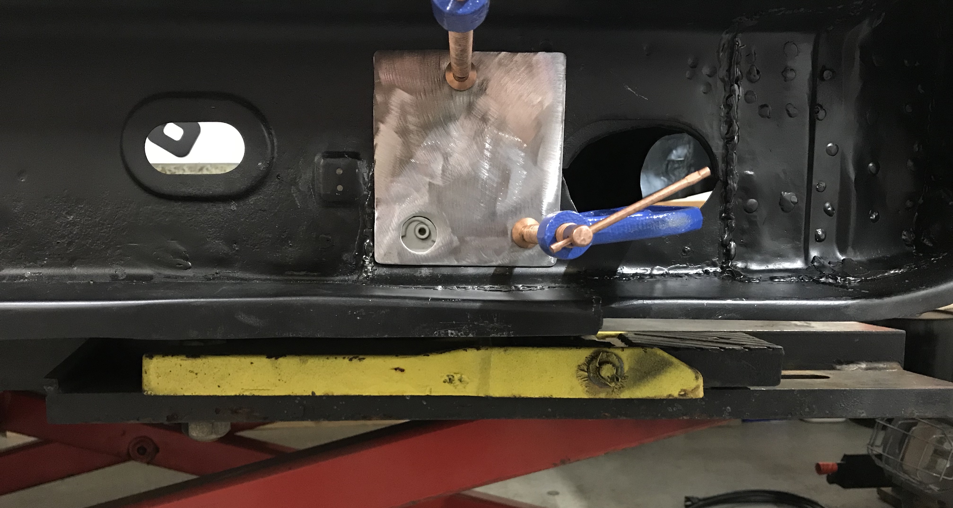 Latest task is the seatbelt bolt and plates.