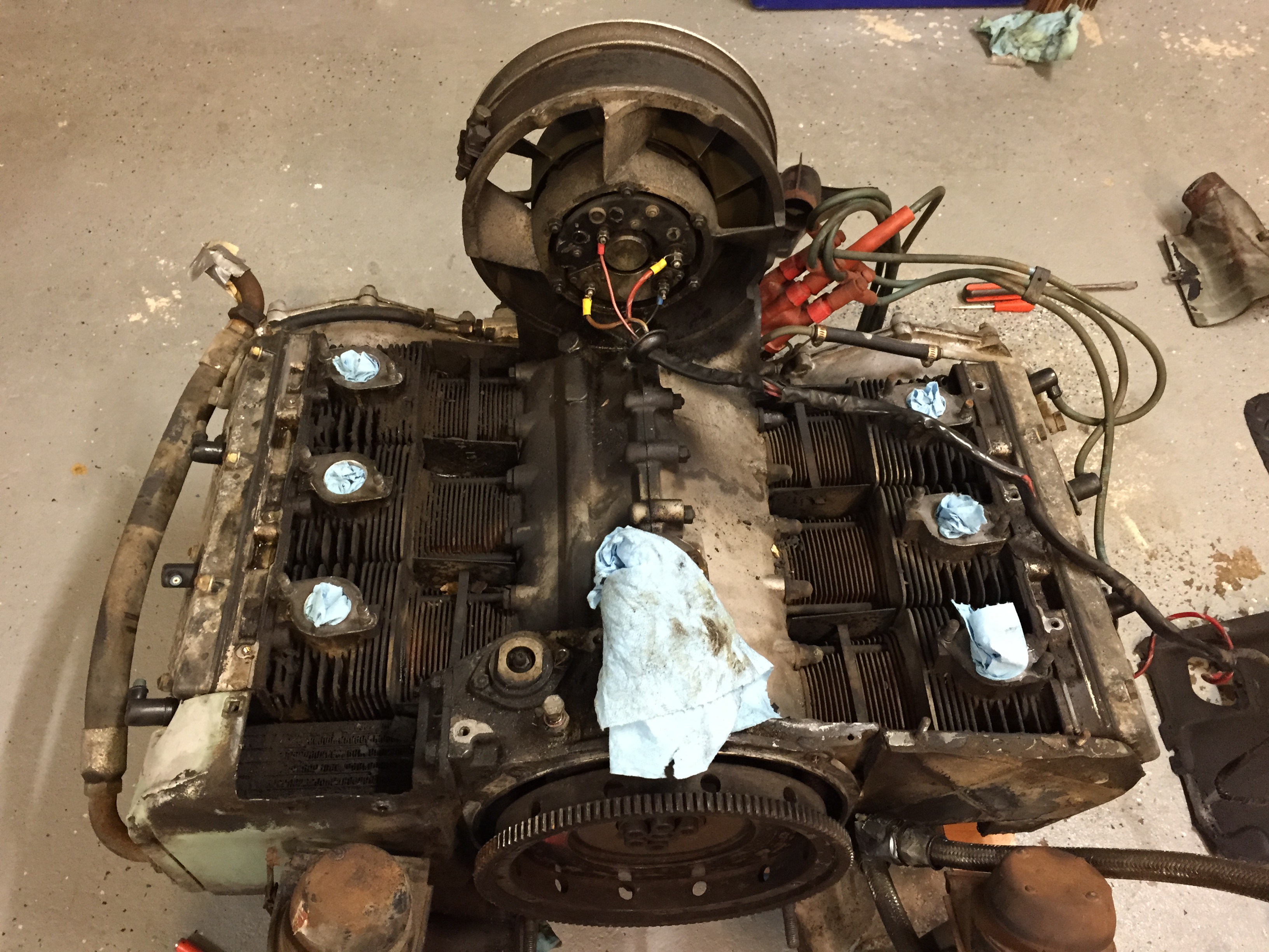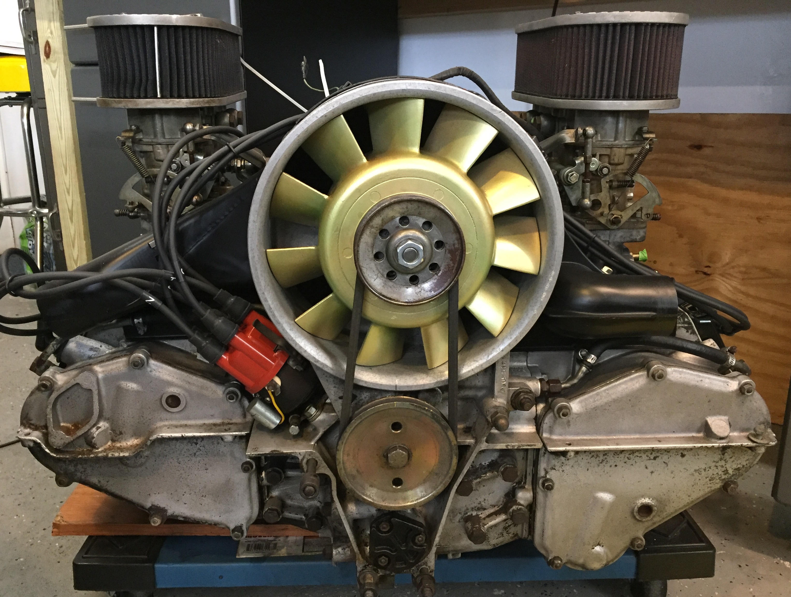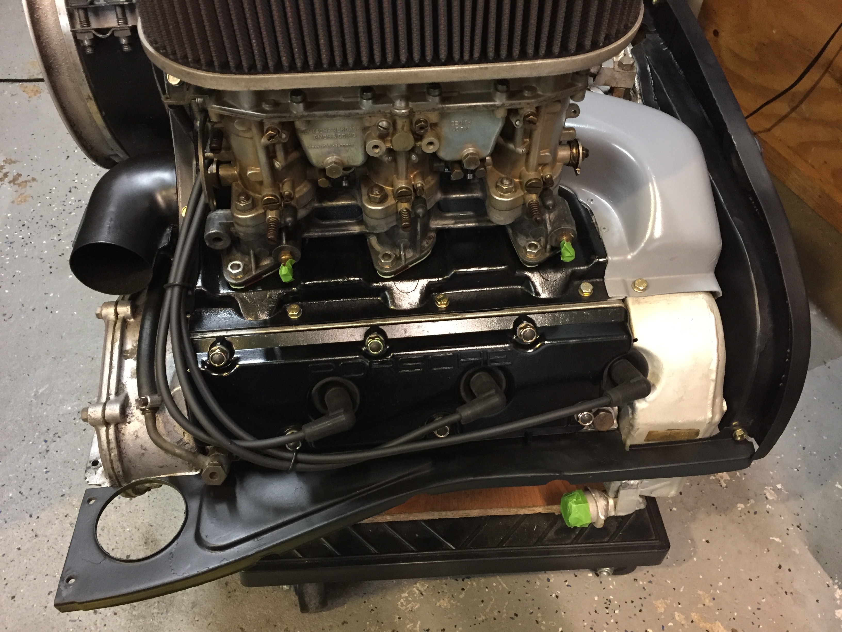 The distributor is a 0231-159-001 cast iron from a '67 T. I think they might also have been used on the "S". The 2.4 has an aluminum '67 case, counterweight crank, rods were checked and balanced by Ray Litz. New Mahle pistons and cylinders. Heads have 46 intake and 40 exhaust. The Zeniths are configured similar to Webers and have the emission circuit eliminated. The engine looks tired on the outside when I first purchased it. It was used for about 20,000 miles in a VW Vanagon project for the fellow I Purchased it from. He's a fellow 914 racer down in Texas. He was going to put it in his vintage racer but decided to stay 4 cyl. He was happy in his class. Didn't want to deal with different specs and rules that the six would entail. Besides he has a 356 project looming. Been on the phone and email a couple times with him. Good guy. He's waiting for me to fire this thing up as well! |