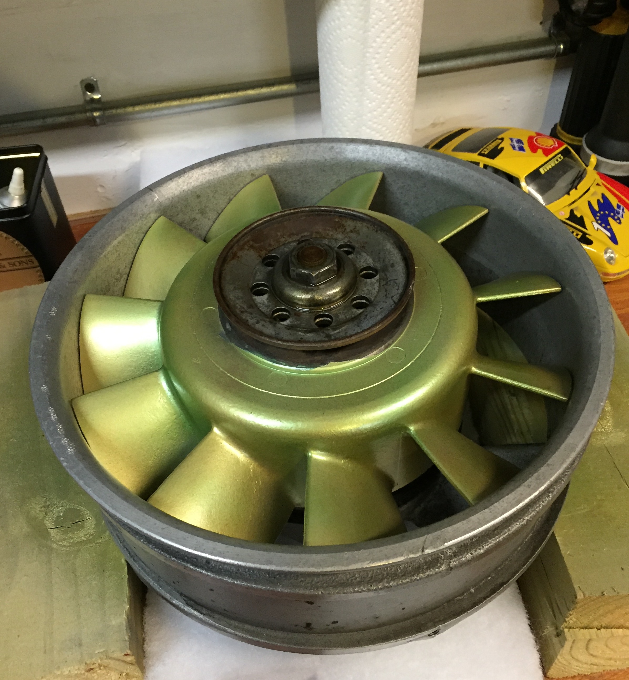 Replaced the alternator and painted the fan and shroud.