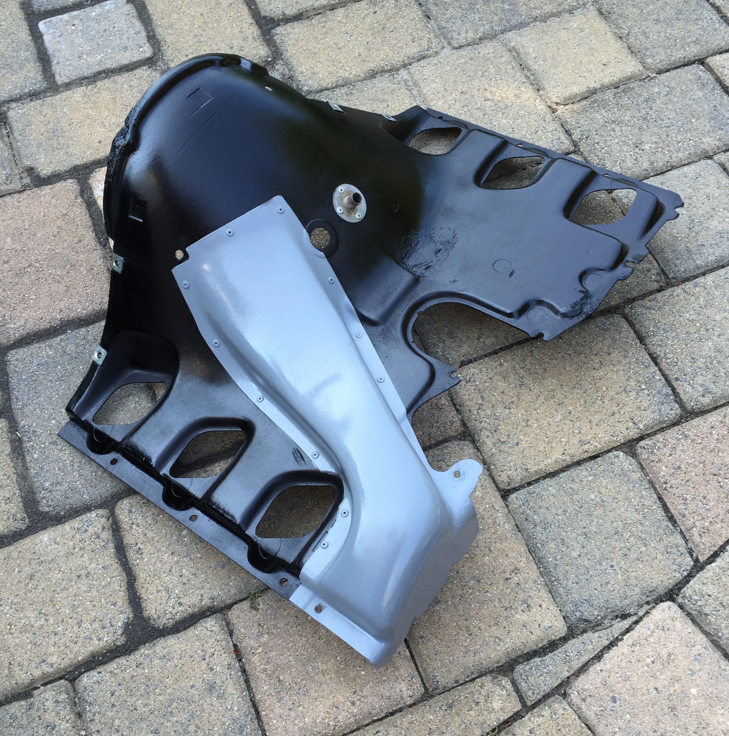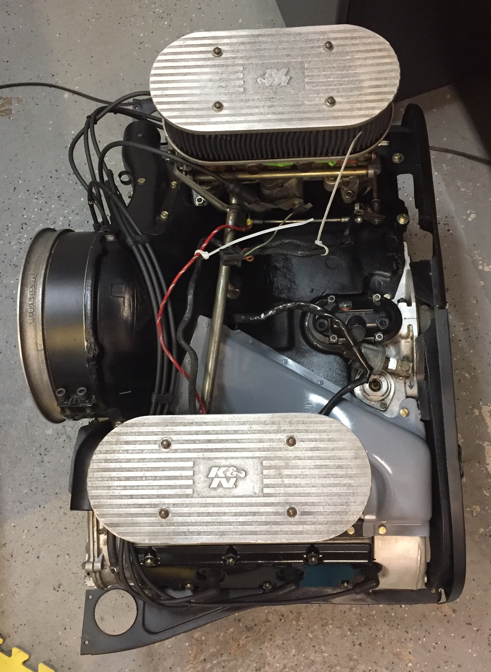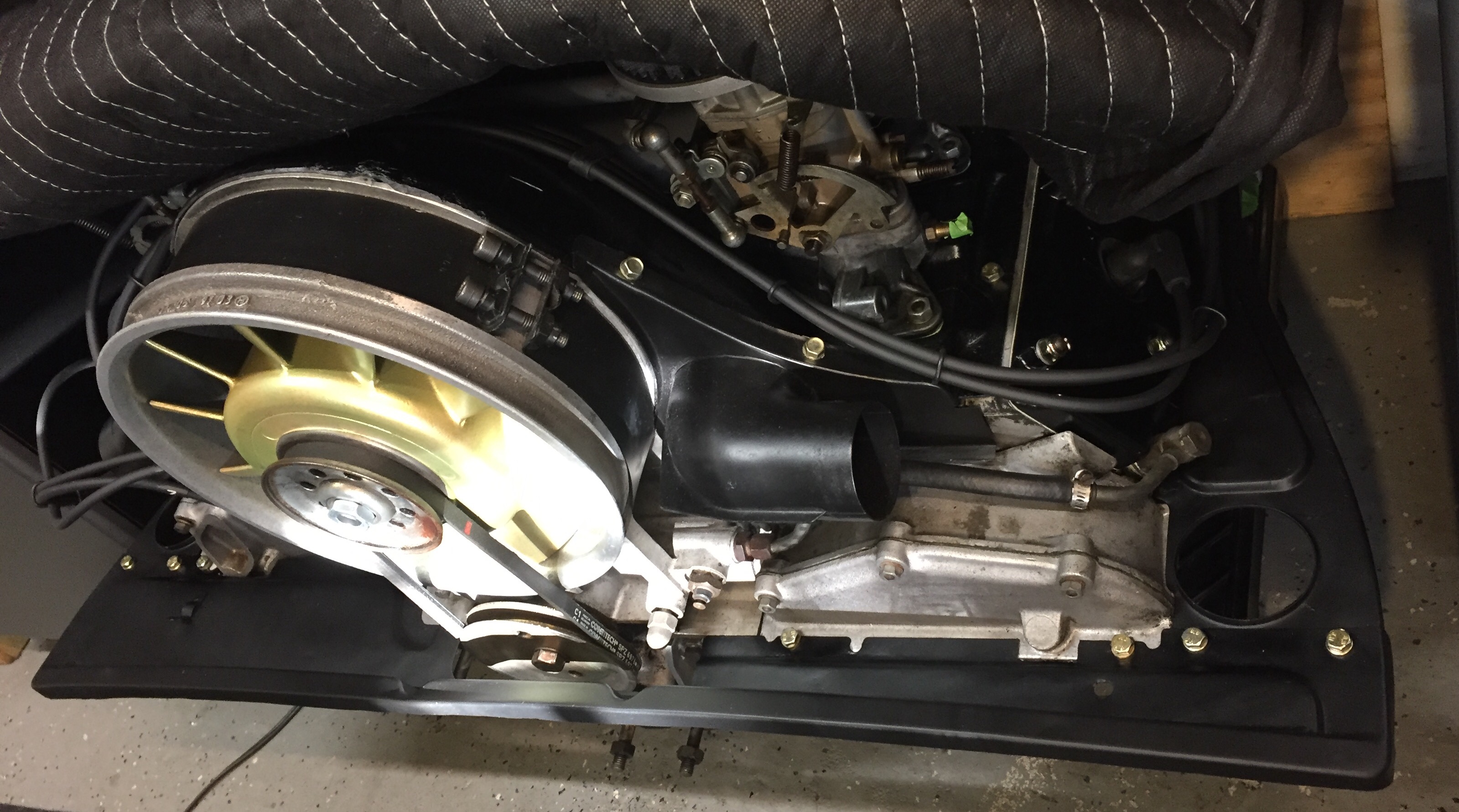 Put the carbs back on. Added the surrounding sheet metal.