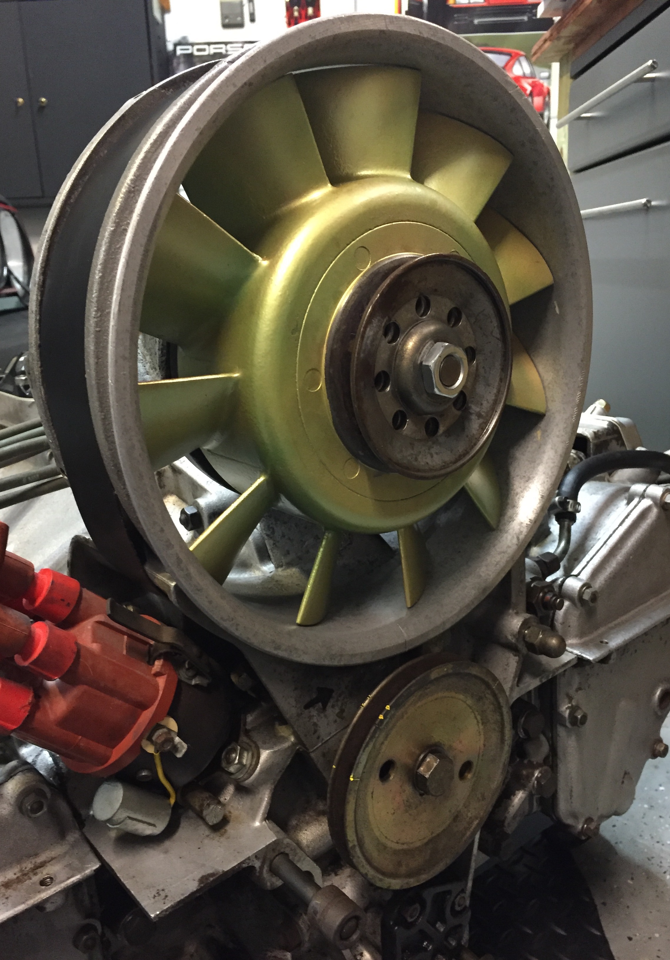 Fan side will have to come back off to place motor mount on. Momentarily felt bad as I had to cut into original 914/6 tin to Make it fit the 2.4 engine. Oh well. Sorry purists! Attached thumbnail(s) |