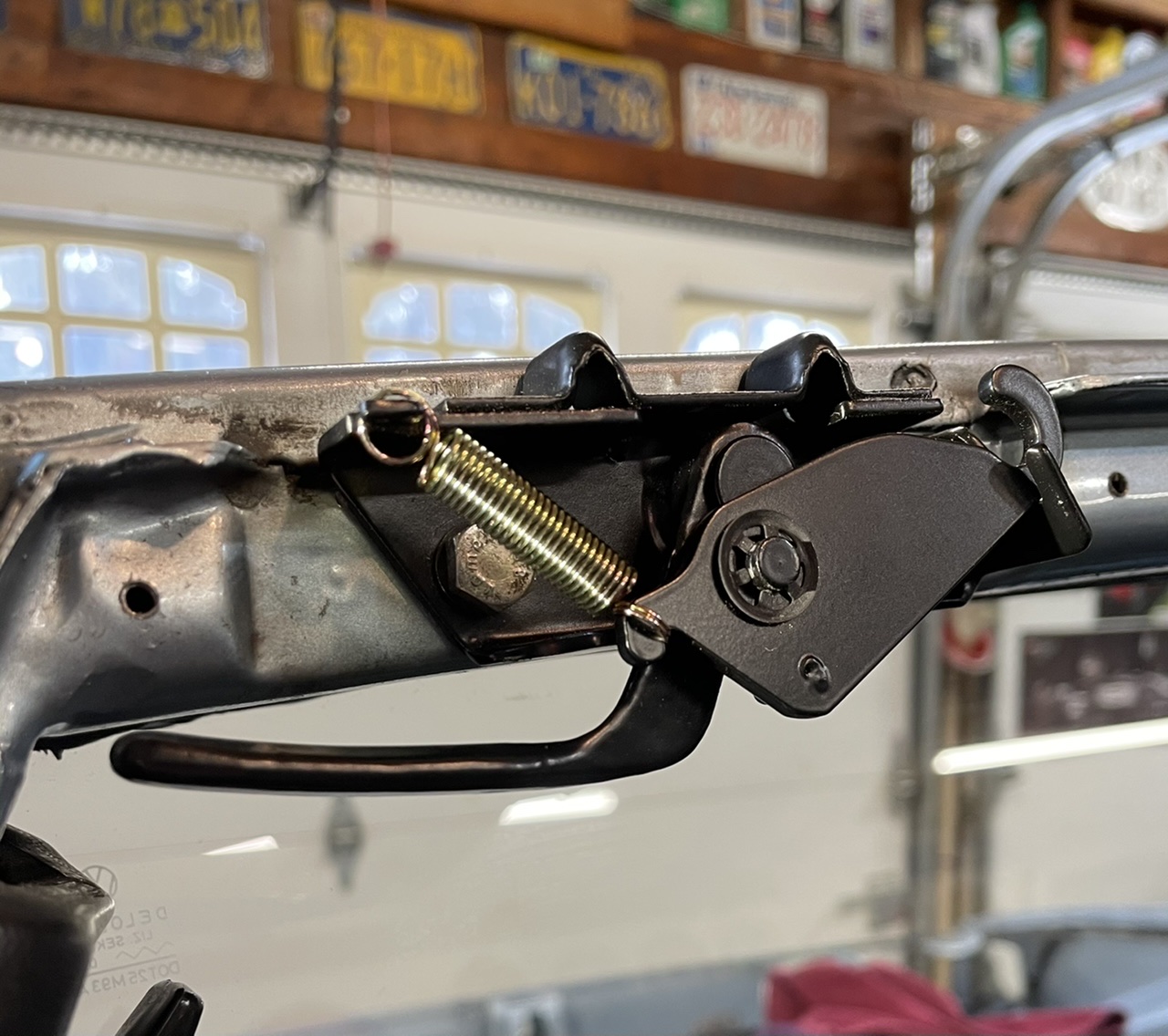 Installed freshened targa latches and a not torn up targa bar pad, which unfortunately I’ll take out again ... very carefully... when it’s time to paint. By then I’ think I’ll have 914rubber new targa bar pad and I’ll install that one.
