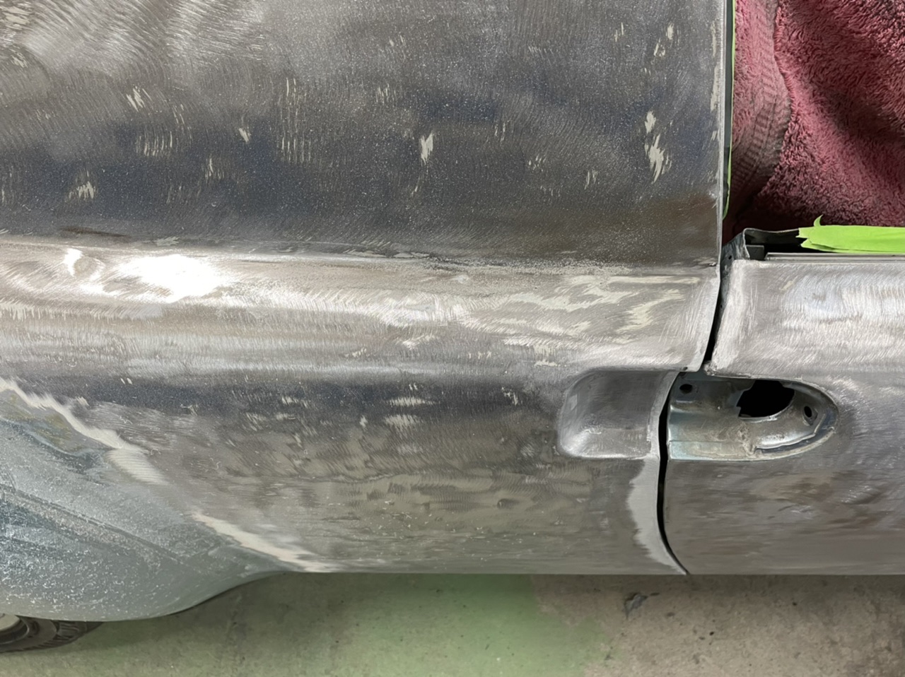 This was the worst on the sheet metal. A couple potholes! They were opened up to more clean solid metal and brazed closed. The backside on inside of fender/wheel well was sound. This area is quite the meeting spot of panels. It’s no wonder water gets trapped.