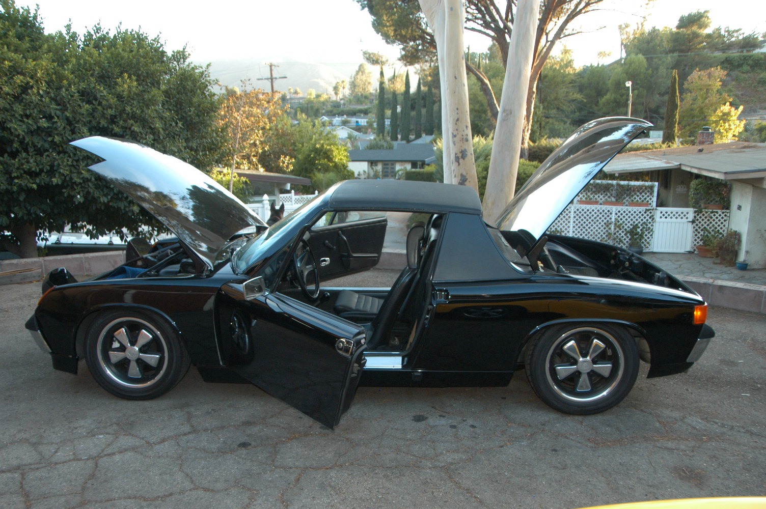1970 PORSCHE 914-6 A True Factory 6 This is a great running, very good sounding original 6. Pulls hard and goes through the gears great. Hold on and get ready for the twist and turns of your local canyons. This car feels at home on the road, Well mannered as a mid engine car should be. Its quick and will keep you alert on acceleration, very fast little car. Has a rebuilt 2.4T motor with about 7000 miles on motor over 14 years small oil leak as most all air cooled Porsche do. Has standard matching 9146 trans. Al Reed refinished rim with 205/50/15 tires. Very clean and straight body but paint needs work in spots. NO RUST on this car A big plus. The car stops and perform very well on the road. For my standard I would do all new turbo tie rods and ball joints and a set of front shocks for that race car feel if you so desire. Black on Black interior. 5 Speed. Original color was Signal orange. Car just needs a new home & is very much ready to go and ready to drive. $45K firm is the asking price. Will help with shipping.. Call Leamon 818 266 7774 Anytime Attached thumbnail(s) |
