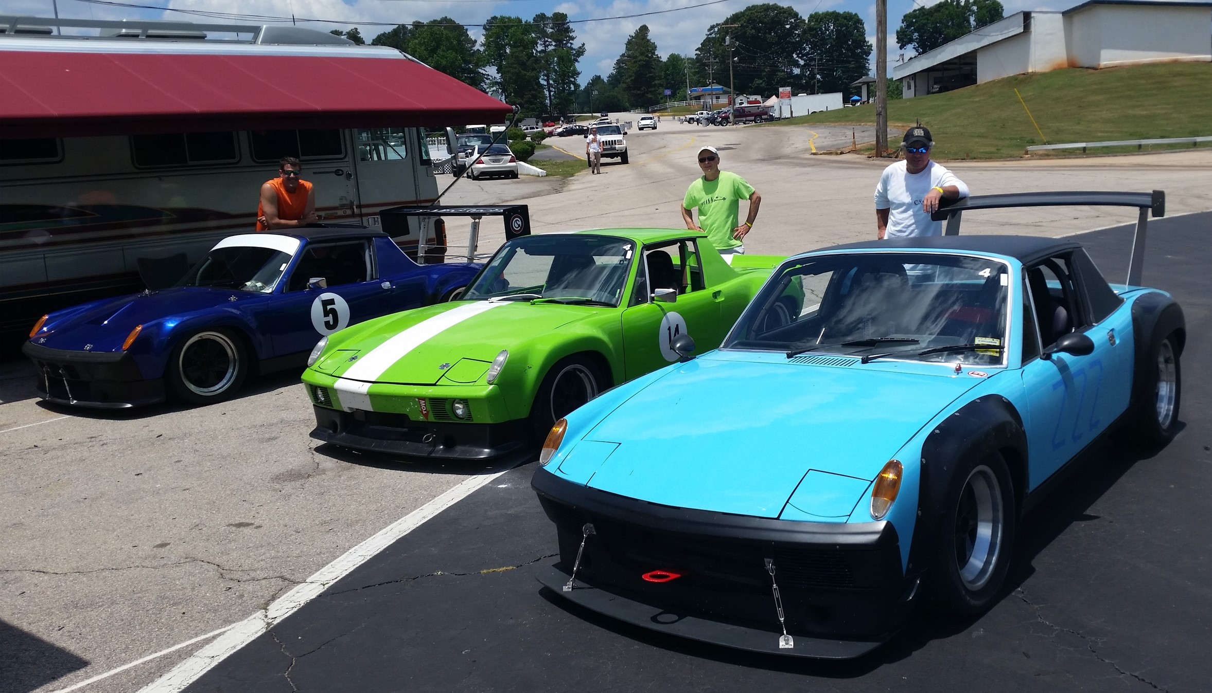Steve: I know "real old amateur race cars" don't compete (or are necessarily appreciated) well against the beauty queens but what the hell. This is from RA earlier this year (April?) using the 914 in ways that allowed it become an icon - on the track...not at car shows. (IMG:style_emoticons/default/poke.gif) (IMG:style_emoticons/default/rolleyes.gif) All three of us are members here on the World and I have always liked how the colors popped - especially the two-others (John's green teener)! The second picture (gaffers tape and all) is mid corner turn 1 at Road Atlanta - rolling the slicks over and eyes through the apex! (IMG:style_emoticons/default/beerchug.gif) Tony |