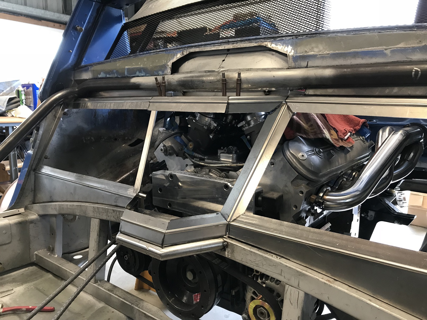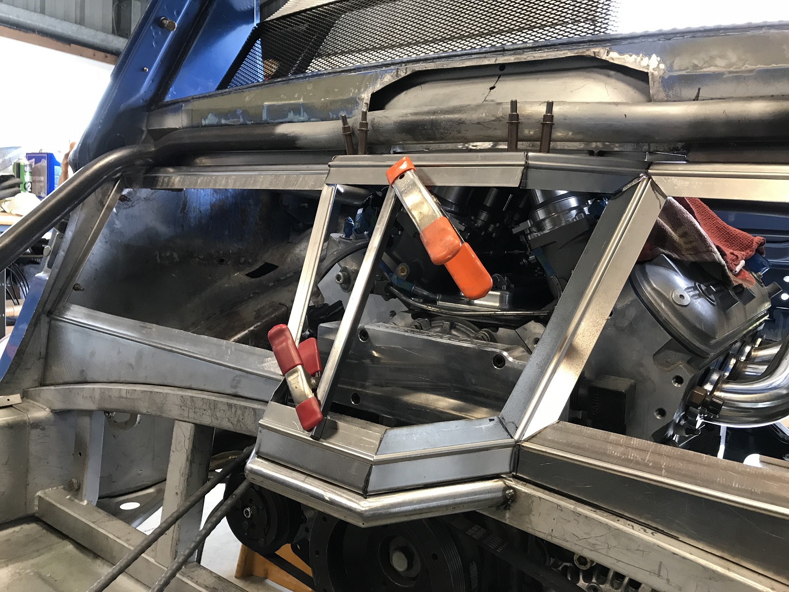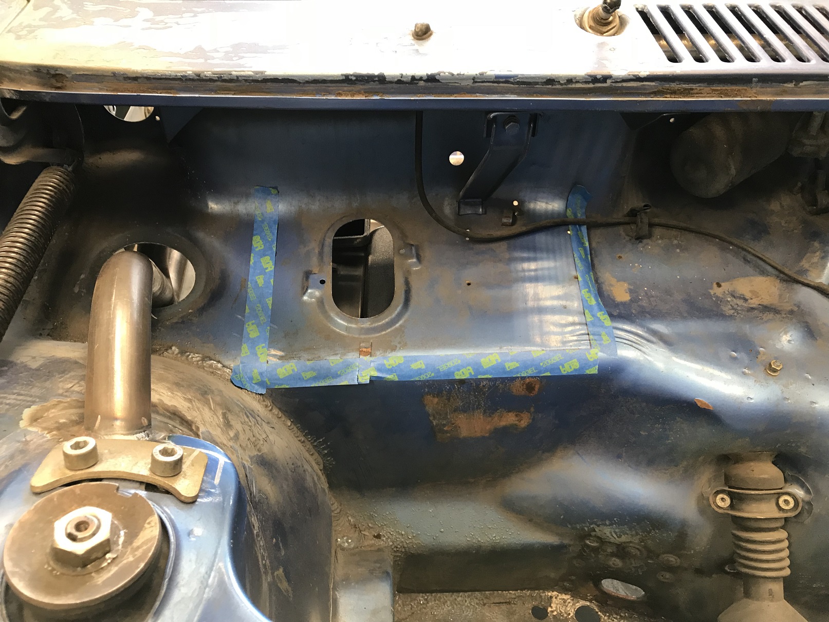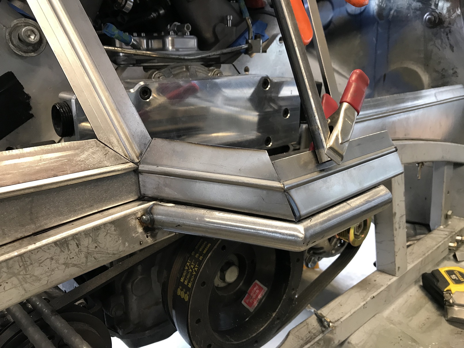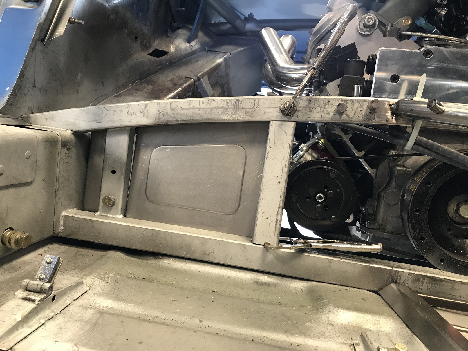 And with the fire wall fab mostly done, I started on Version 3 of how to close off the lower sections. More fiddly fab as the lower wall isn't vertical. You may recall that while the wall isn't, the seat belt retractors require vertical mounting.